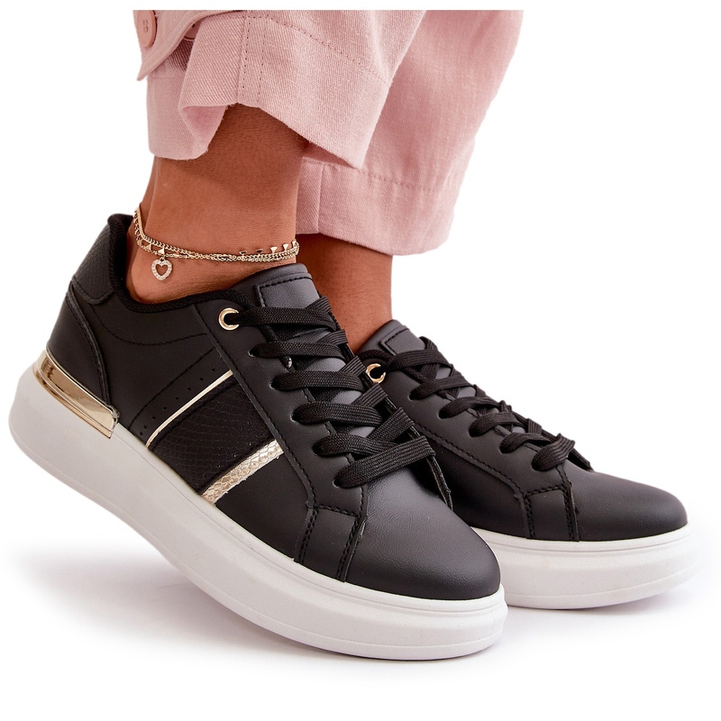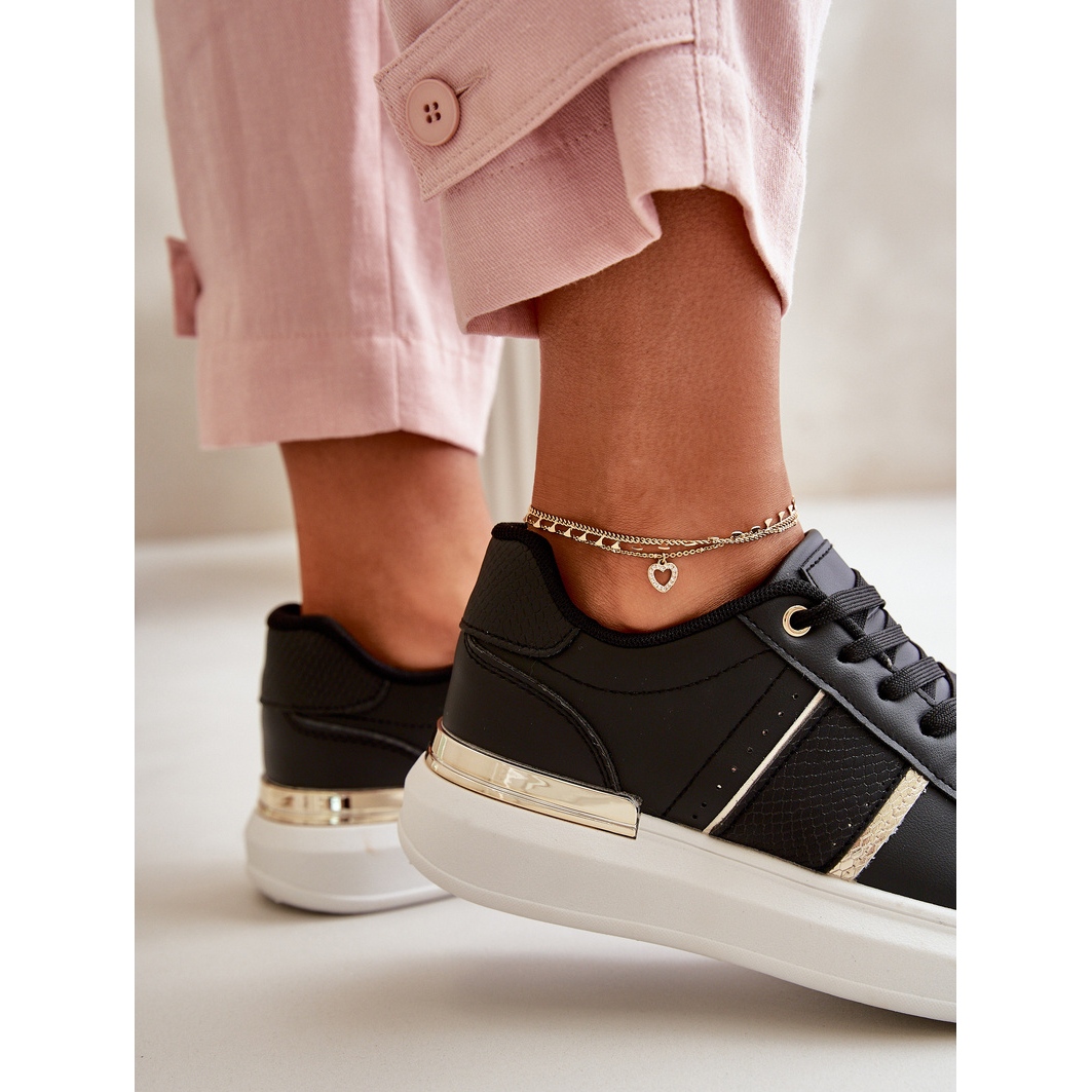 Voici des baskets à plateforme pour femmes à la mode en éco-cuir de couleur noire - le modèle Nevisase. Ces chaussures élégantes allient confort et design moderne, devenant un élément indispensable de toute garde-robe. Les accents de miroir attirent l'attention et donnent un caractère unique à n'importe quel style, du plus décontracté au plus élégant.