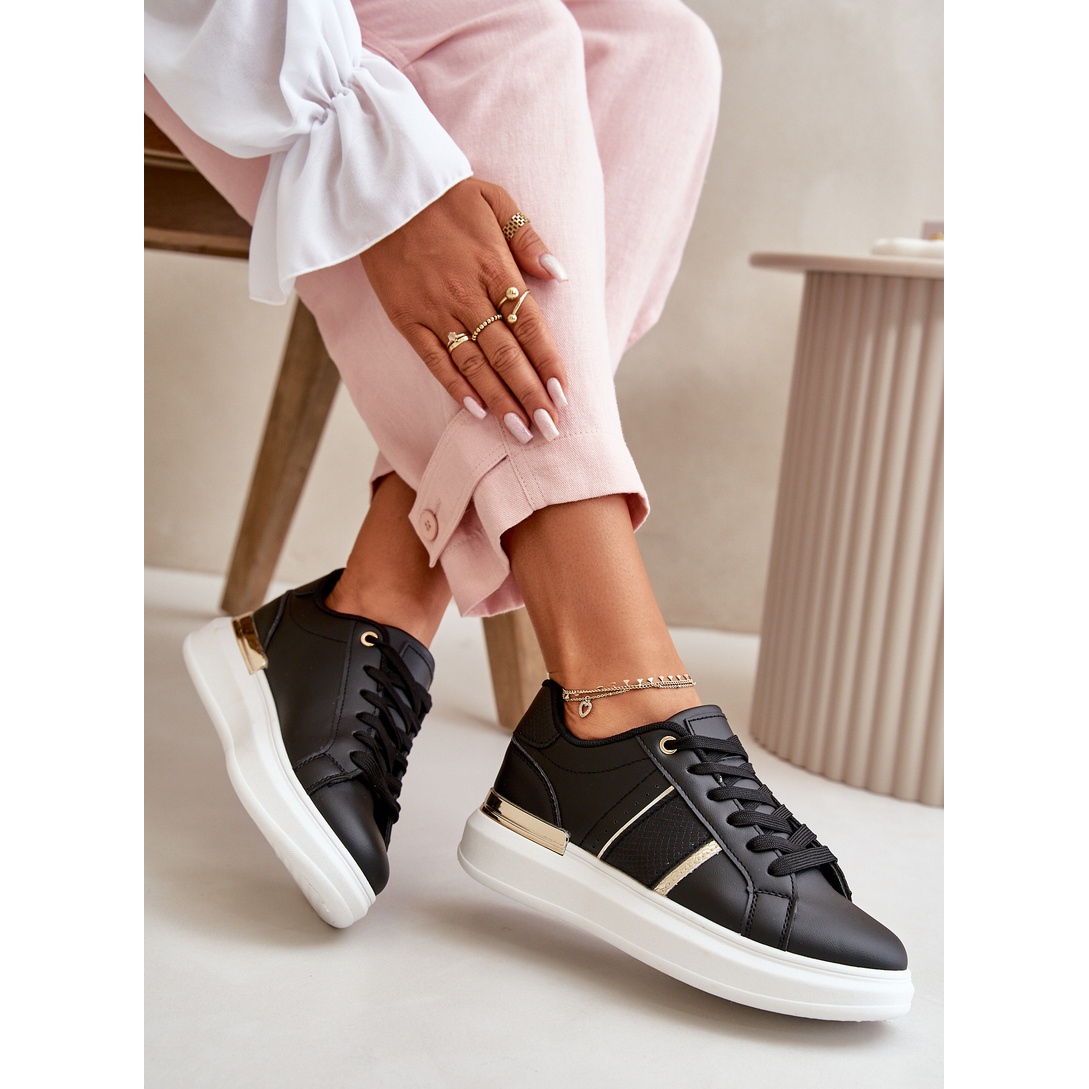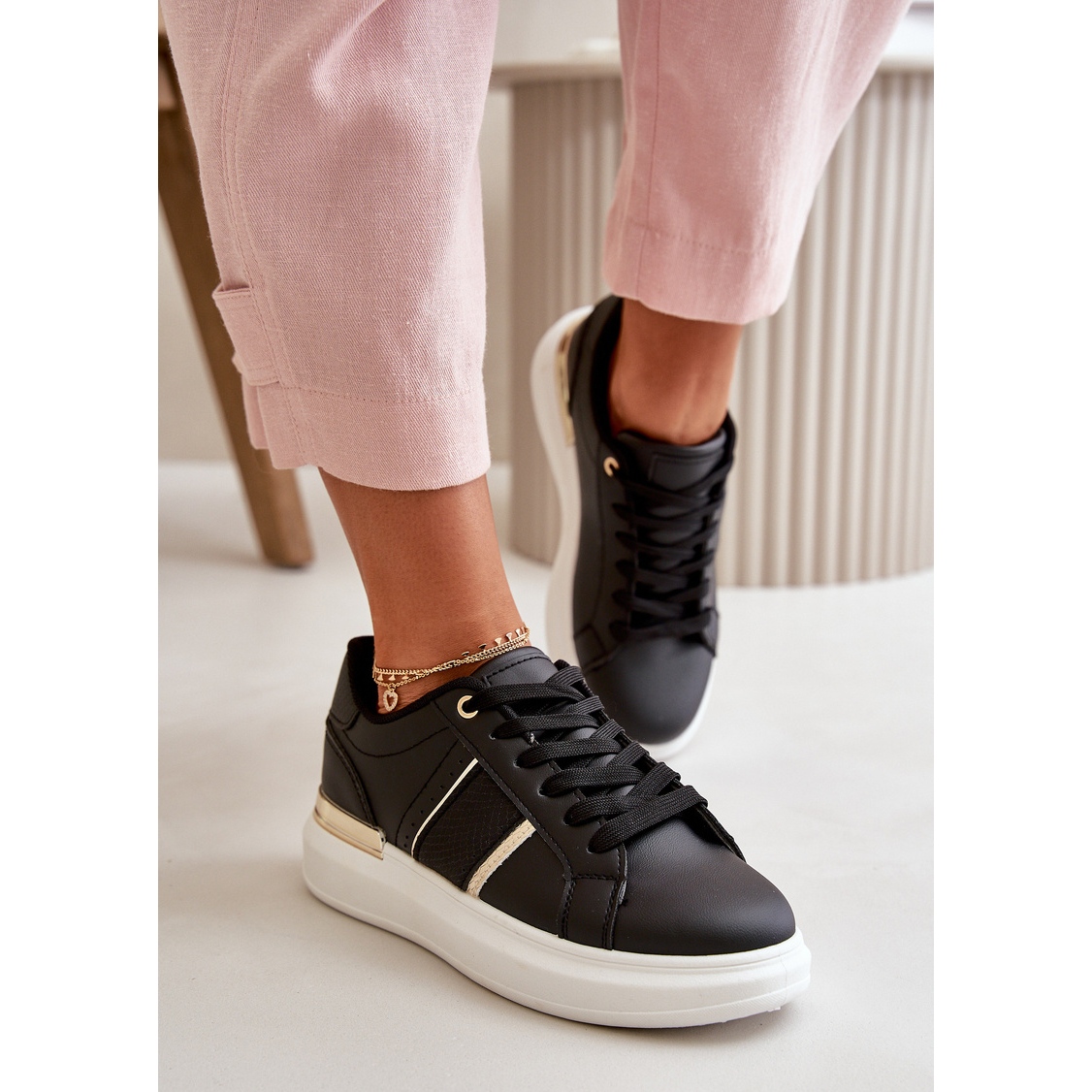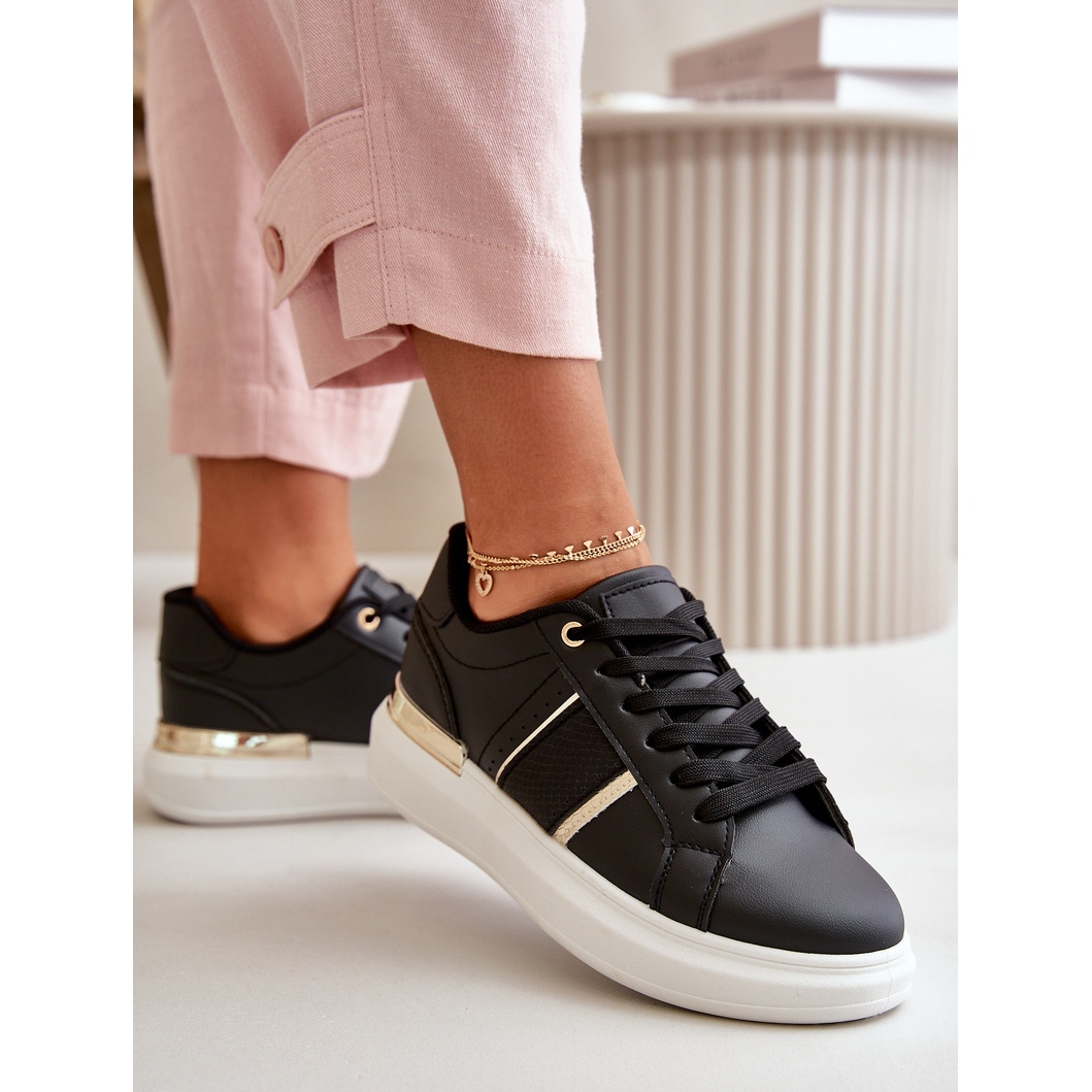 Détails: Baskets à plateforme à la mode pour femmes en cuir écologique, noir Nevisase le noir