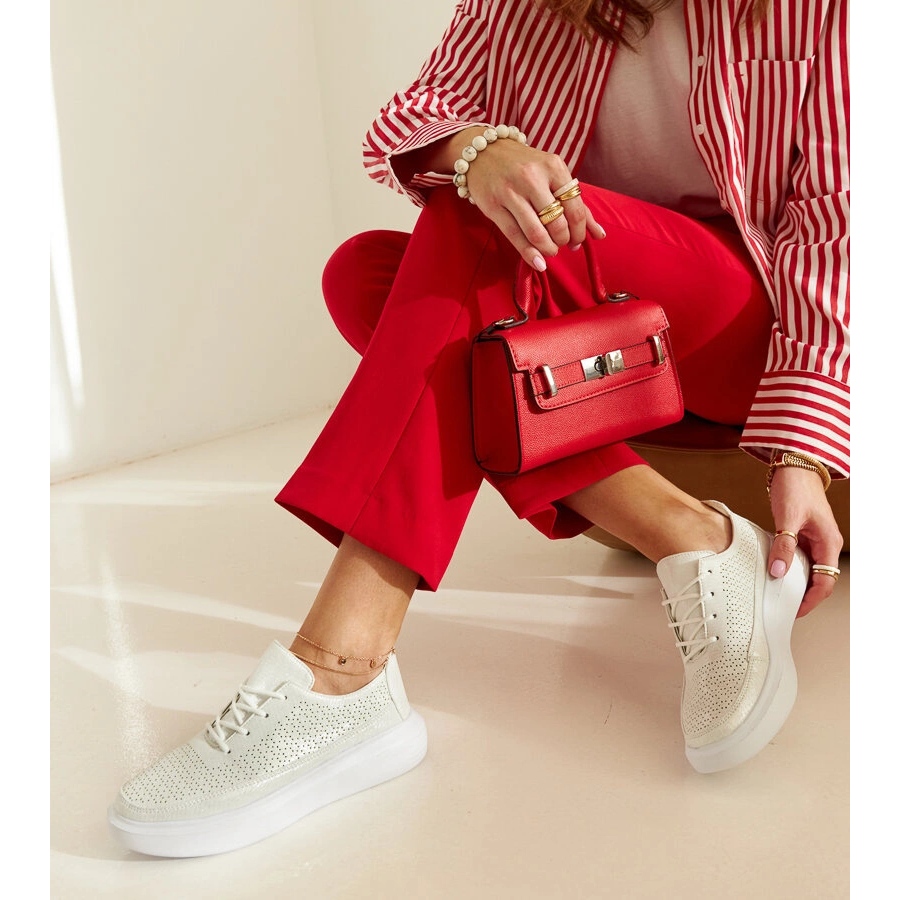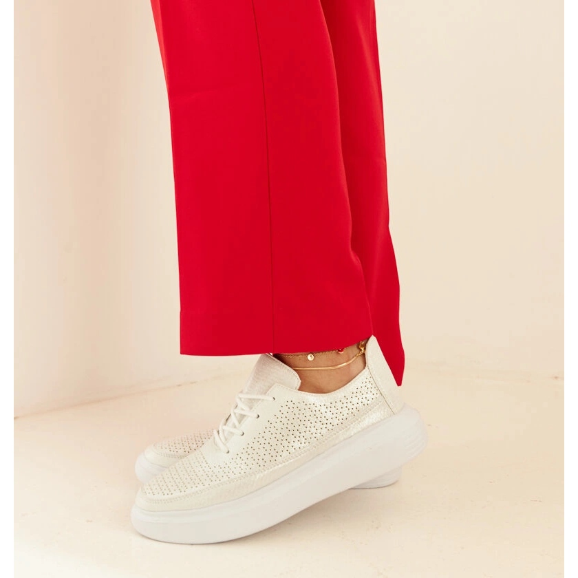 Les baskets sont équipées d'une plate-forme plate d'une hauteur de 3,5 cm, ce qui offre un confort supplémentaire chaque jour. Grâce à la semelle blanche, en caoutchouc, ces chaussures sont non seulement superbes, mais sont également pratiques et faciles à nettoyer.