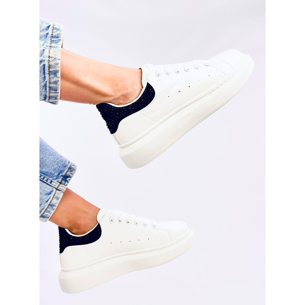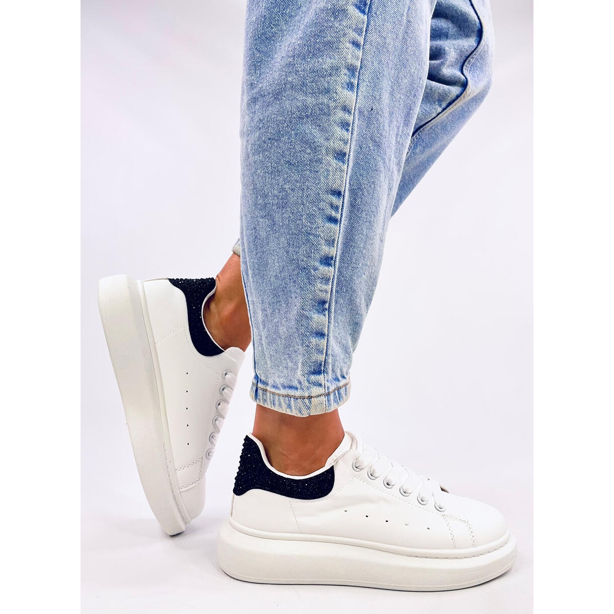 Les baskets sur la plate-forme Berdine Whiteblack sont le choix parfait pour les femmes qui apprécient le style et le réconfort chaque jour. Ces chaussures de sport à la mode se distinguent par une coupe classique et des accessoires uniques qui attirent les looks. L'insert de paillettes, décoré de zircons, leur donne un personnage élégant, ce qui en fait un complément parfait aux stylisations décontractées et plus sophistiquées.