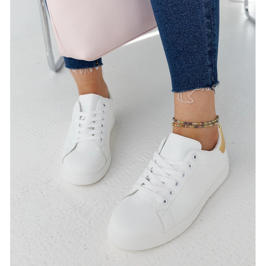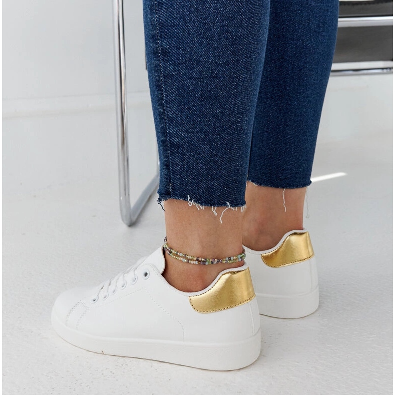 La disponibilité dans une couleur blanche classique rend ces baskets à plateforme très universelles, parfaites pour une variété de styles estivaux, des tenues décontractées aux tenues plus élégantes. Un accent intéressant est la couleur dorée supplémentaire et la couleur blanche de la semelle, qui confèrent à la chaussure un éclat unique.