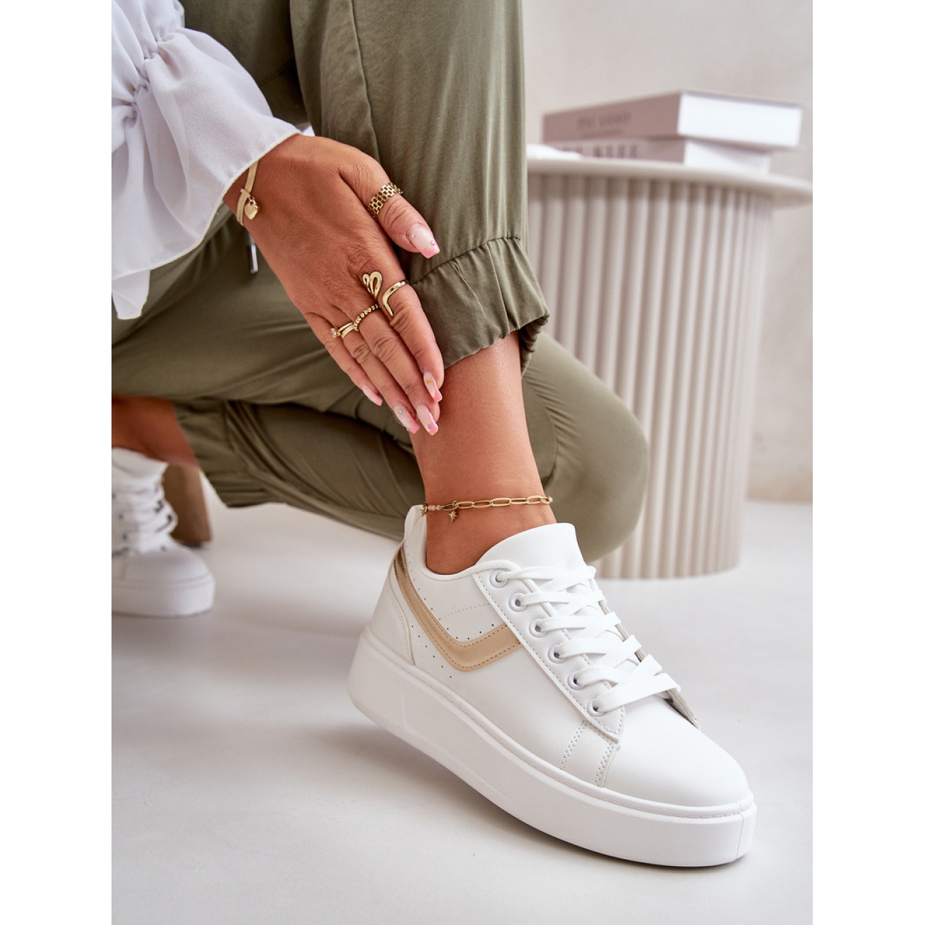 Ce sont des baskets à plateforme à la mode dans une couleur blanche classique qui seront certainement reconnues par les femmes à la recherche de chaussures élégantes et confortables. Fabriquées en cuir écologique de haute qualité, ces baskets sont non seulement superbes, mais adhèrent également à l'idée de prendre soin de l'environnement.