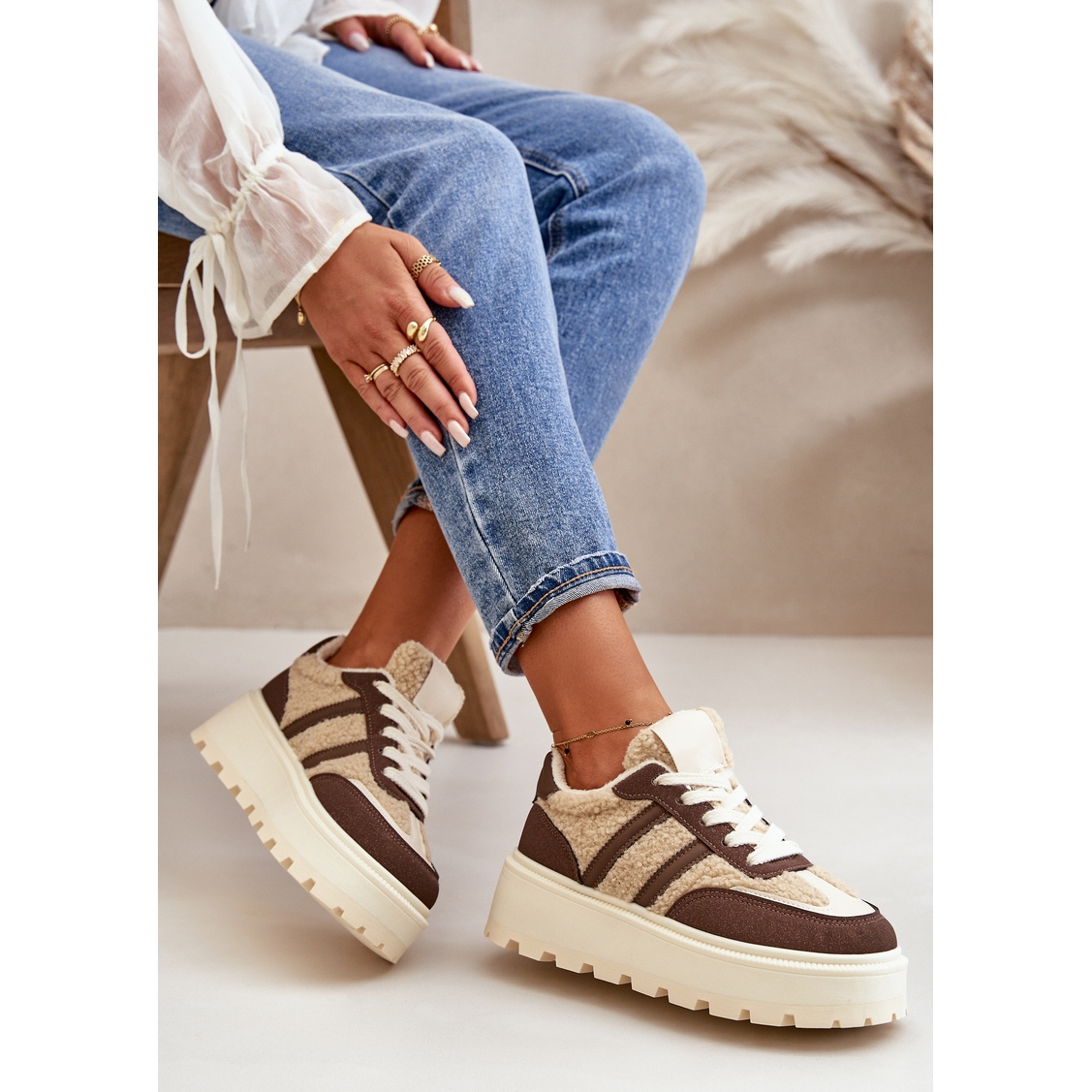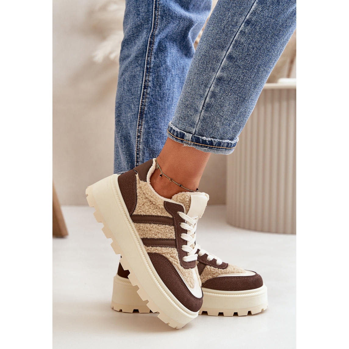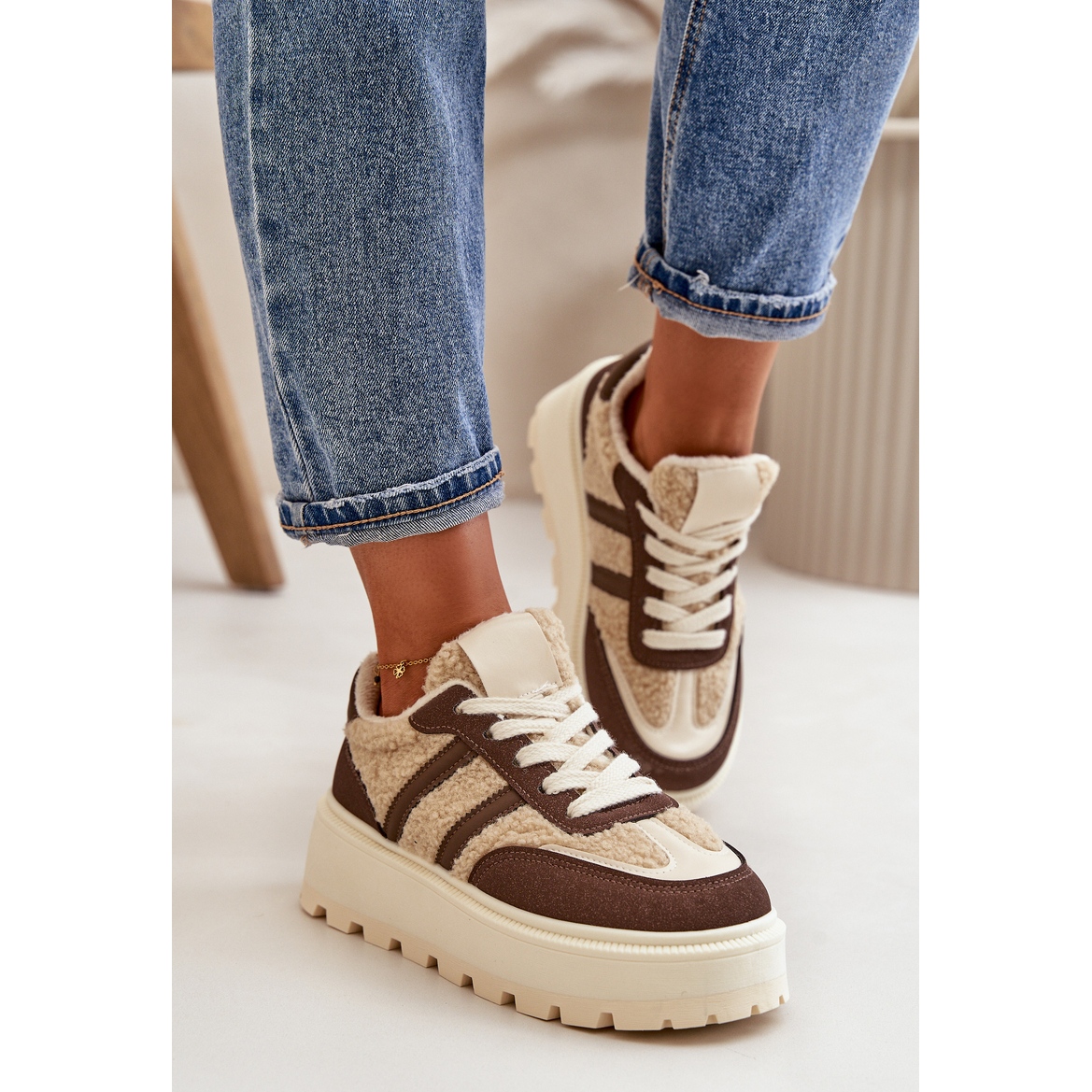 Détails: Baskets à plateforme isolées pour femmes avec peau de mouton, marron Daivlene brun