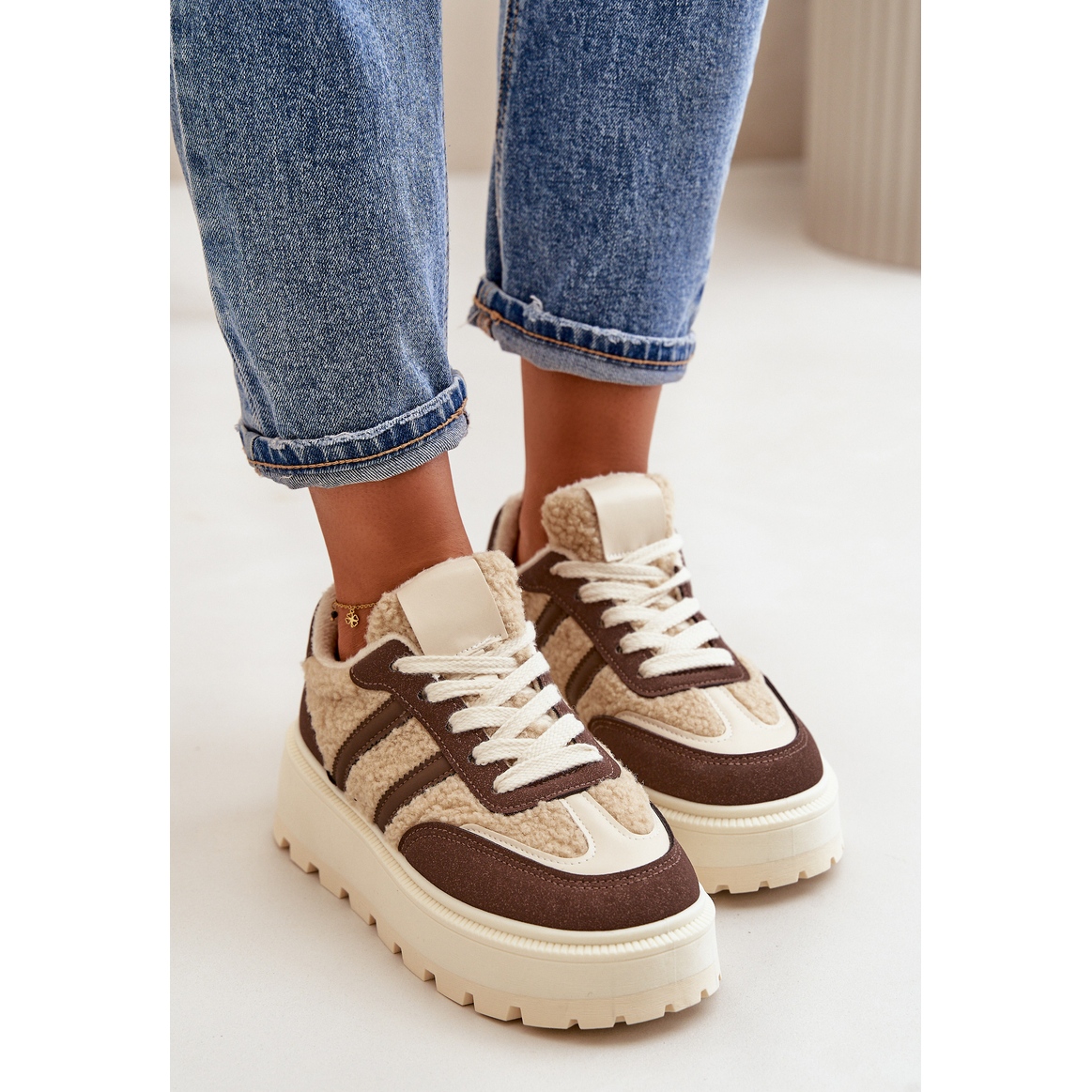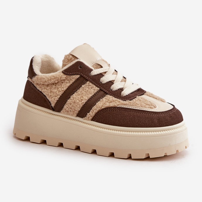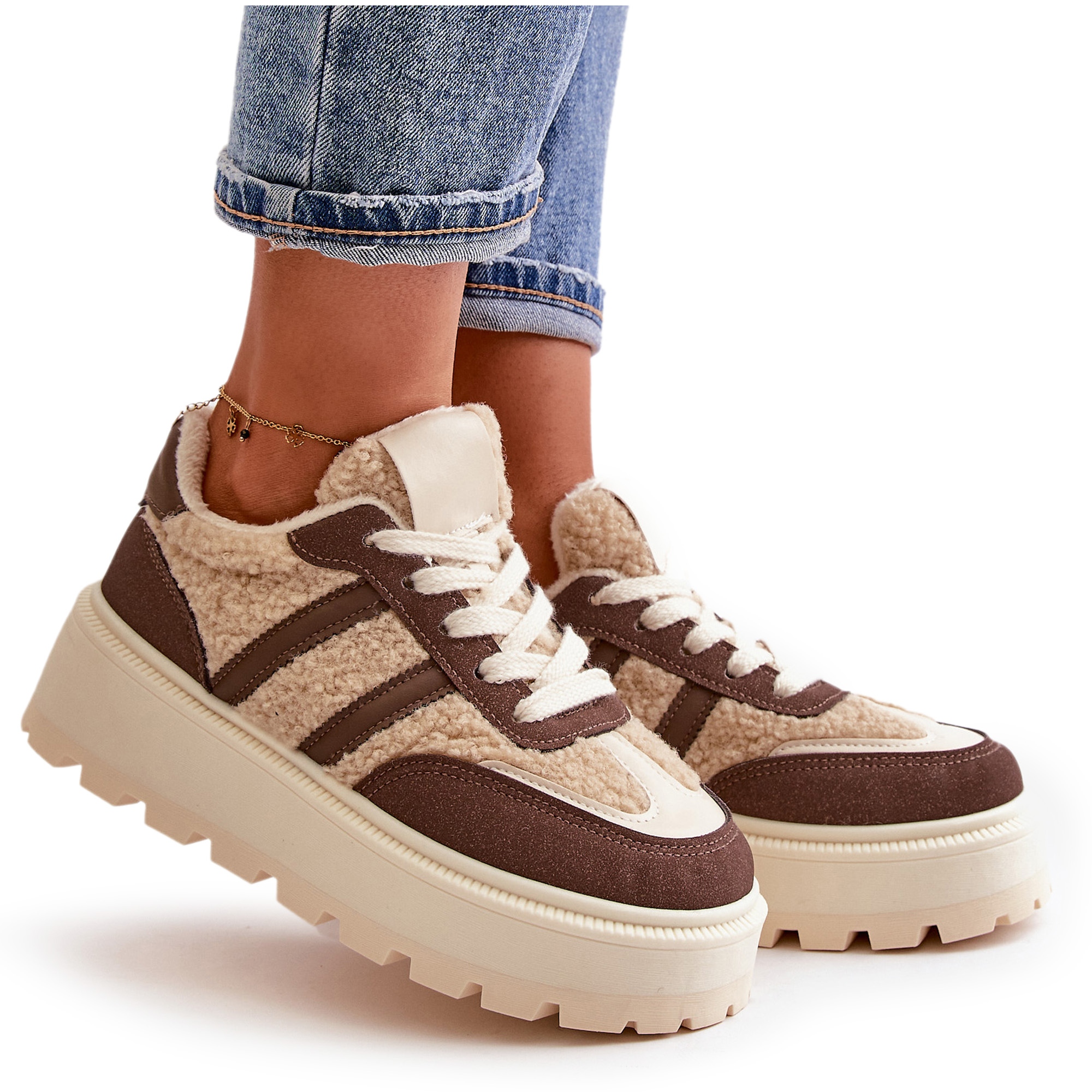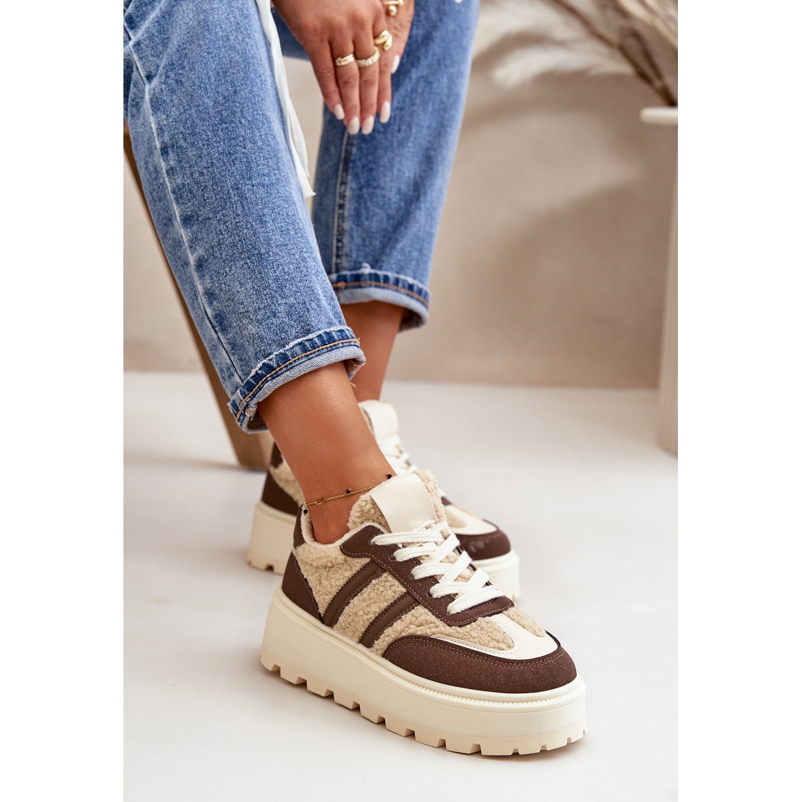 Détails: Baskets à plateforme isolées pour femmes avec peau de mouton, marron Daivlene brun