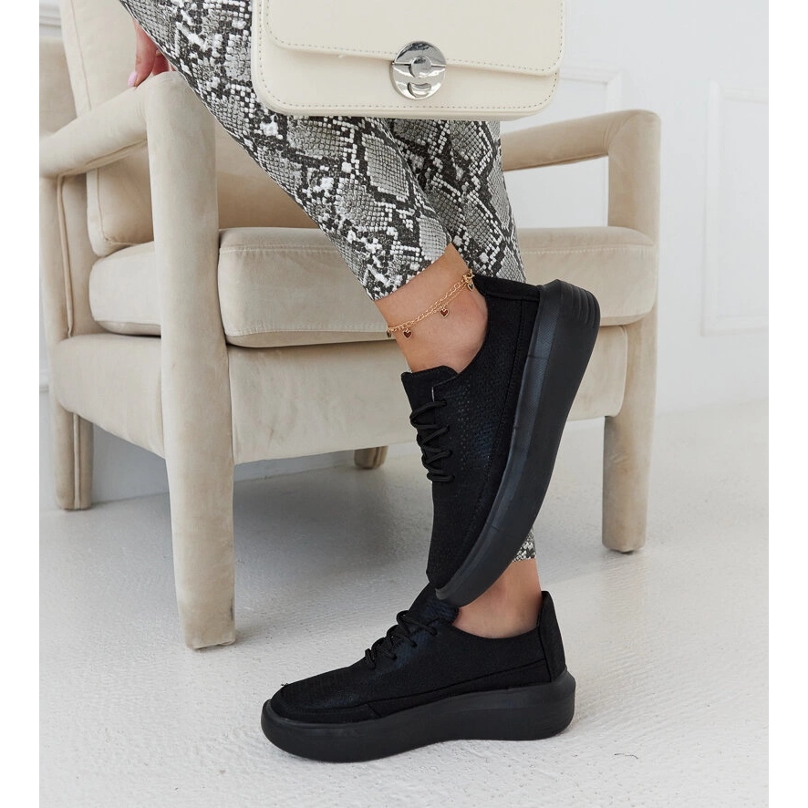 Les baskets noires à plateforme sont l'essence même de la modernité et du confort, répondant parfaitement aux besoins des femmes dynamiques. Leur éclat métallique unique leur confère non seulement une touche de luxe, mais aussi un caractère unique et avant-gardiste. Ils mettent l’accent sur le style et la personnalité, tout en étant totalement fonctionnels.