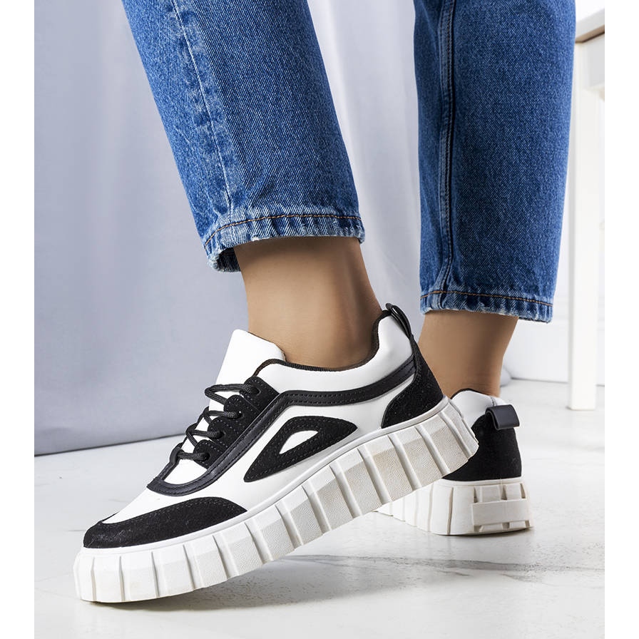 Sneakers noirs sur la plate-forme Robyn - Élégant, confortable et avec caractère. Une coupe classique et intemporelle gagne un accent moderne grâce à une plate-forme haute de 5 cm avec une large rainure. La tige en face de la cheville est décorée d'une impression spectaculaire et d'une couture subtile, et le fermoir lacé vous permet de correspondre parfaitement à la chaussure au pied.