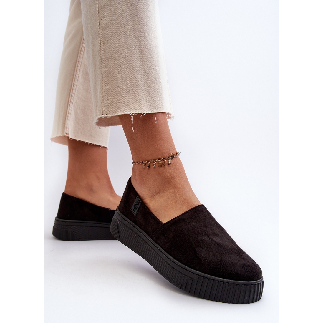 Les chaussures sont fabriquées en cuir suédé écologique de haute qualité, ce qui garantit une apparence élégante et une durabilité. Le bout de la sneaker est rond et la semelle en caoutchouc solide garantit une bonne adhérence. Leur fermeture à enfiler facilite le processus d'enfilage et de retrait, offrant ainsi un confort supplémentaire au quotidien.