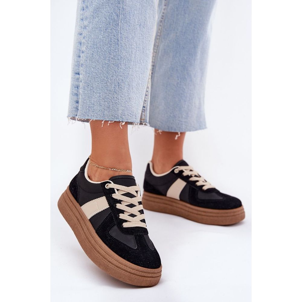 Nous vous invitons à découvrir des baskets féminines élégantes et confortables sur la plate-forme dans une couleur noire classique. Ces chaussures élégantes, en cuir écologique de haute qualité, sont un excellent choix chaque jour, combinant le design moderne avec des solutions pratiques.
