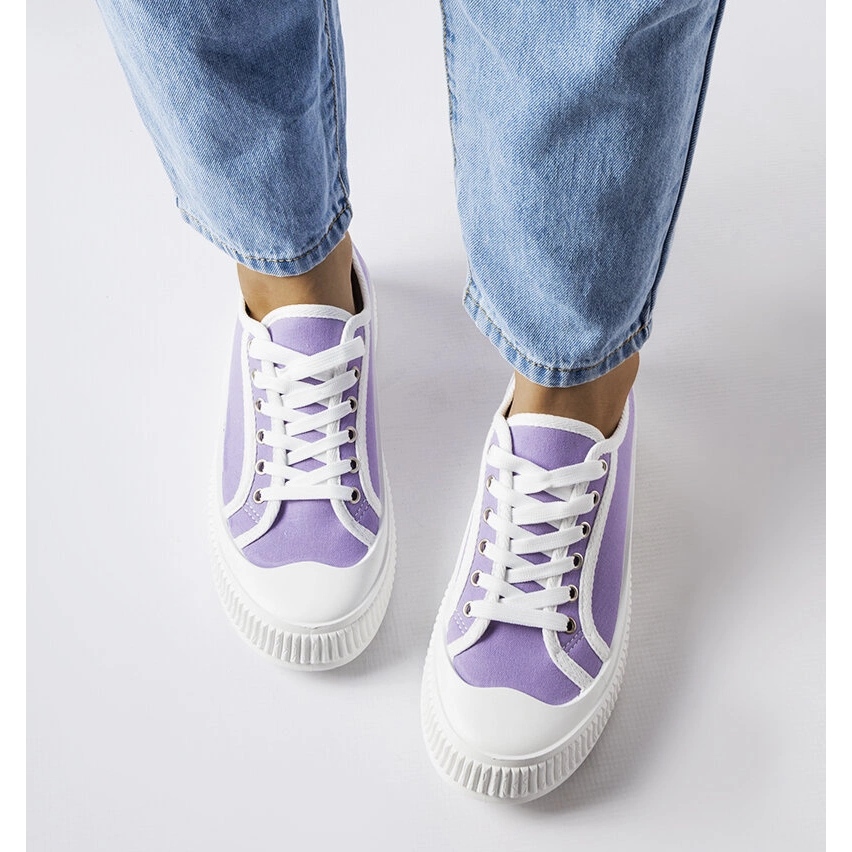 Sneakers violets sur la plate-forme Alfianello - à la mode, confortable et parfaite pour l'été. Des baskets légères et faibles avec un nez arrondie et un laçage, ce qui leur donne un caractère sportif et féminin. Le tiers du tissu respirant dans un violet intense se mélange bien avec une semelle en caoutchouc blanc avec une plate-forme de 4 cm - assure la stabilité et l'élévation subtile de la figure.