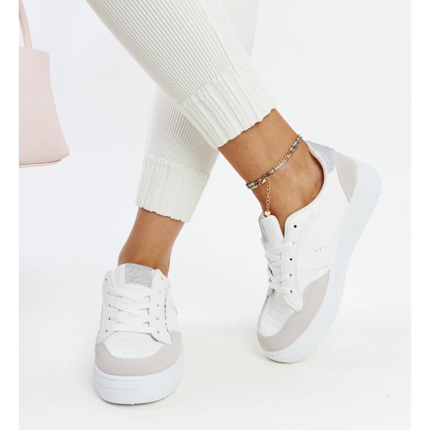 Les baskets ont une plate-forme de 4 cm de haut, ce qui leur donne non seulement un style unique, mais allonge également optiquement les jambes, ce qui est particulièrement souhaitable dans les tendances d'été et de printemps. Le blanc avec l'ajout d'accents en argent en fait un excellent complément aux tenues décontractées et plus élégantes.