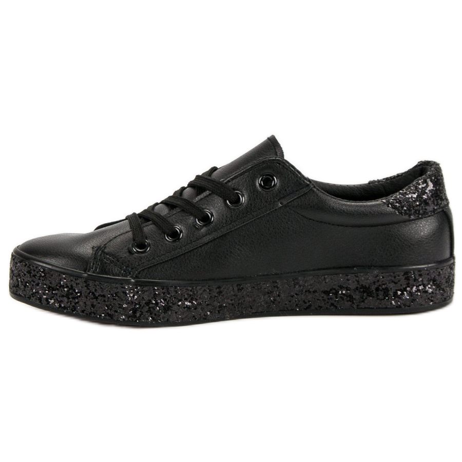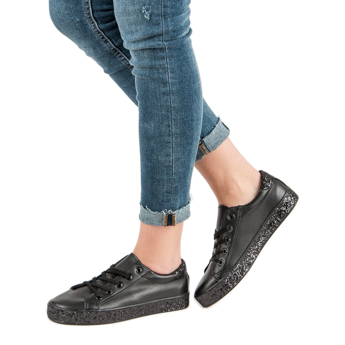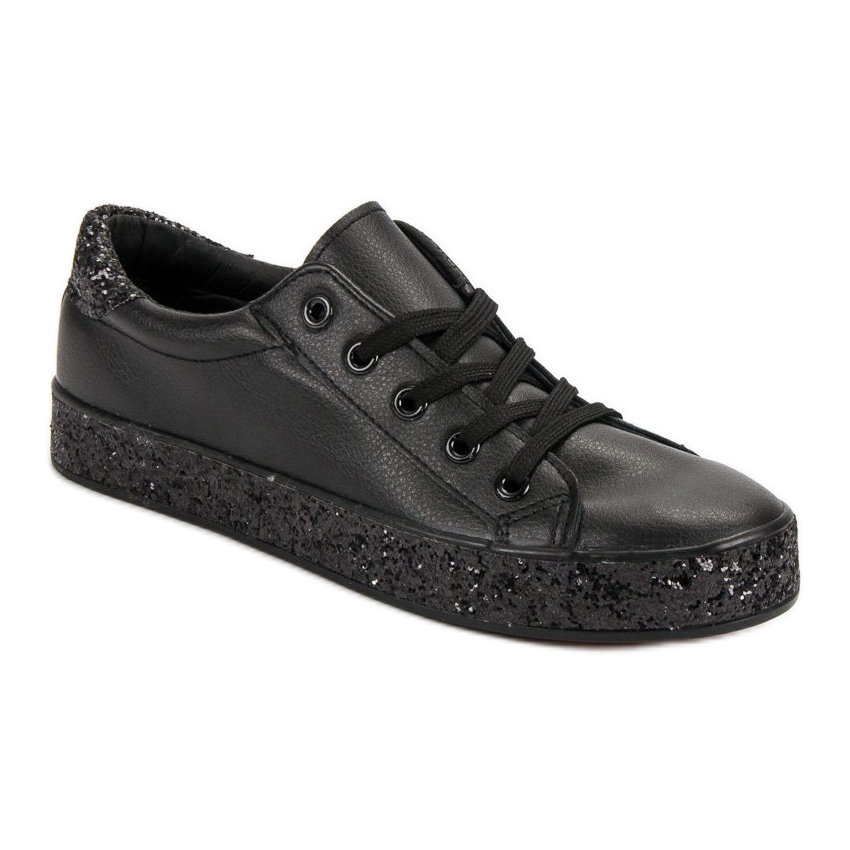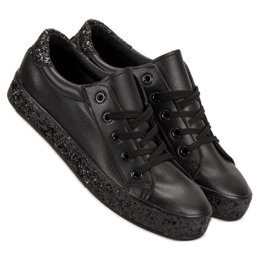 Nous présentons des baskets noires uniques avec une semelle pailletée, qui sont un choix parfait pour tous ceux qui souhaitent ajouter un peu de brillance à leur style de tous les jours. Fabriquées en cuir écologique de haute qualité, ces baskets tendance allient qualité, confort et design original.