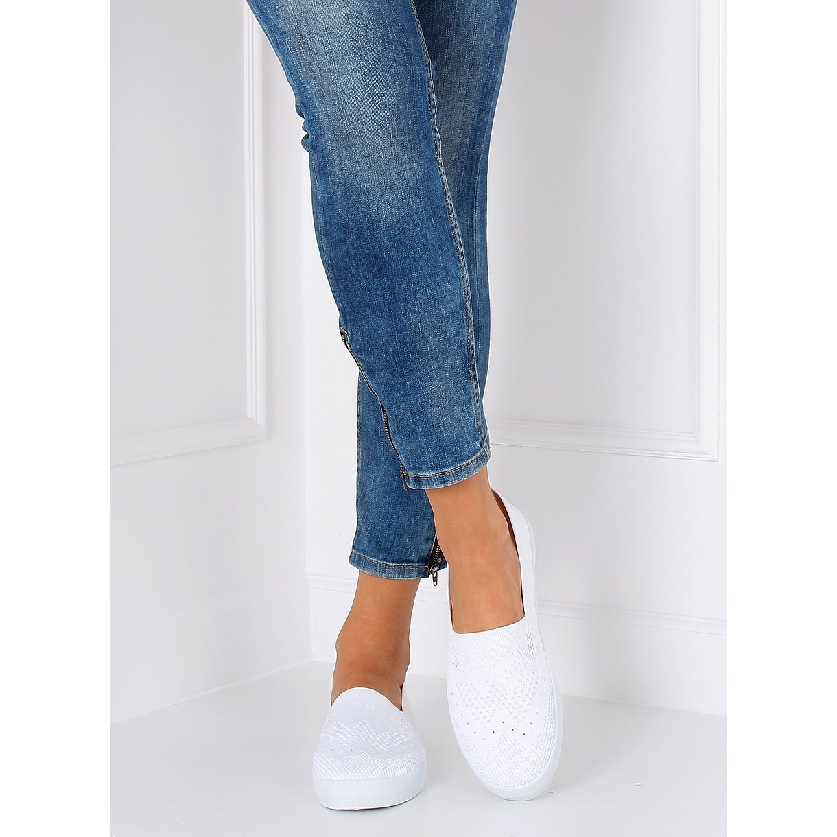 Le modèle JX63P White doté d'un talon plat (hauteur 2 cm) et d'un bout rond garantit un confort de marche. Les avantages supplémentaires incluent une faible hauteur et une semelle intérieure confortable, également en tissu, qui assure la liberté de mouvement.