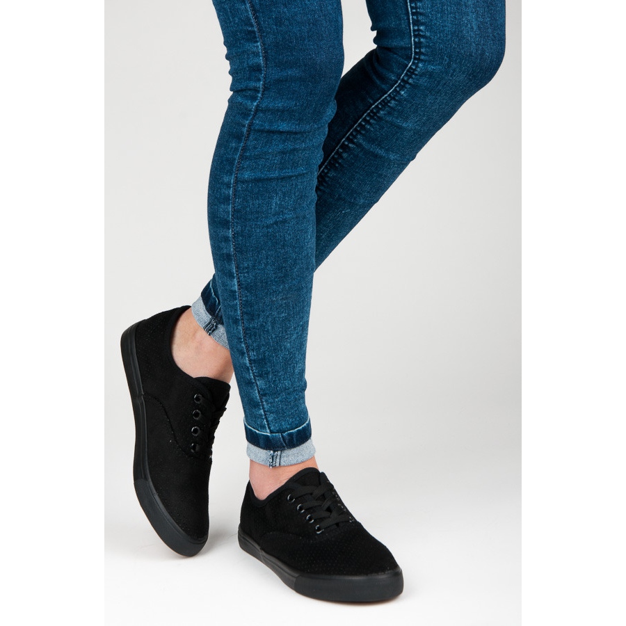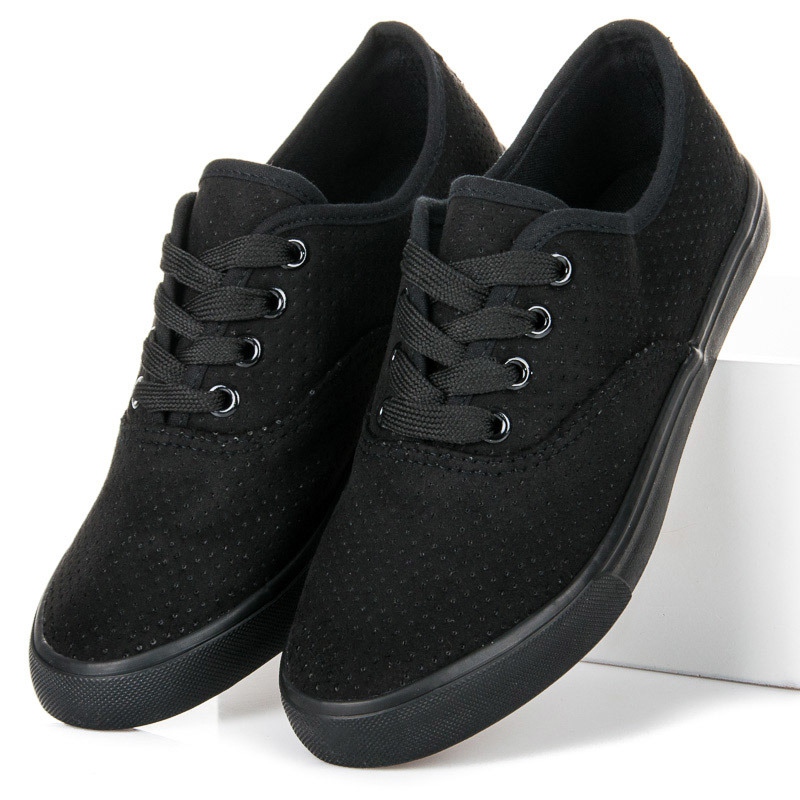 Voici les chaussures parfaites pour les femmes qui apprécient le style, le confort et la fonctionnalité : des baskets ajourées en daim d'une élégante couleur noire. Ces baskets pour femme sont fabriquées en daim écologique ajouré de haute qualité, ce qui en fait un choix respectueux de l'environnement.