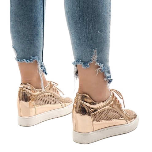 Découvrez les uniques Baskets Ajourées Laquées Champagne WW055A dans une belle nuance de jaune, qui mettront parfaitement en valeur n'importe quel style ! Ces élégantes baskets compensées sont la combinaison parfaite entre design tendance et confort. La hauteur de la cale d'environ 7 cm rend les chaussures non seulement plus hautes visuellement, mais assure également un confort tout au long de la journée.