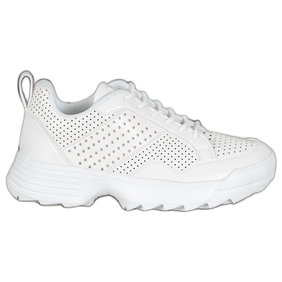 Nous vous présentons les baskets pour femmes Kylie qui allient confort et style moderne. Fabriqués entièrement en blanc élégant, ils sont le choix parfait pour un usage quotidien, s'adaptant à de nombreux styles différents. Leur tige ajourée en matière imitant le cuir ajoute un caractère attrayant au soulier, tout en cassant le look classique.