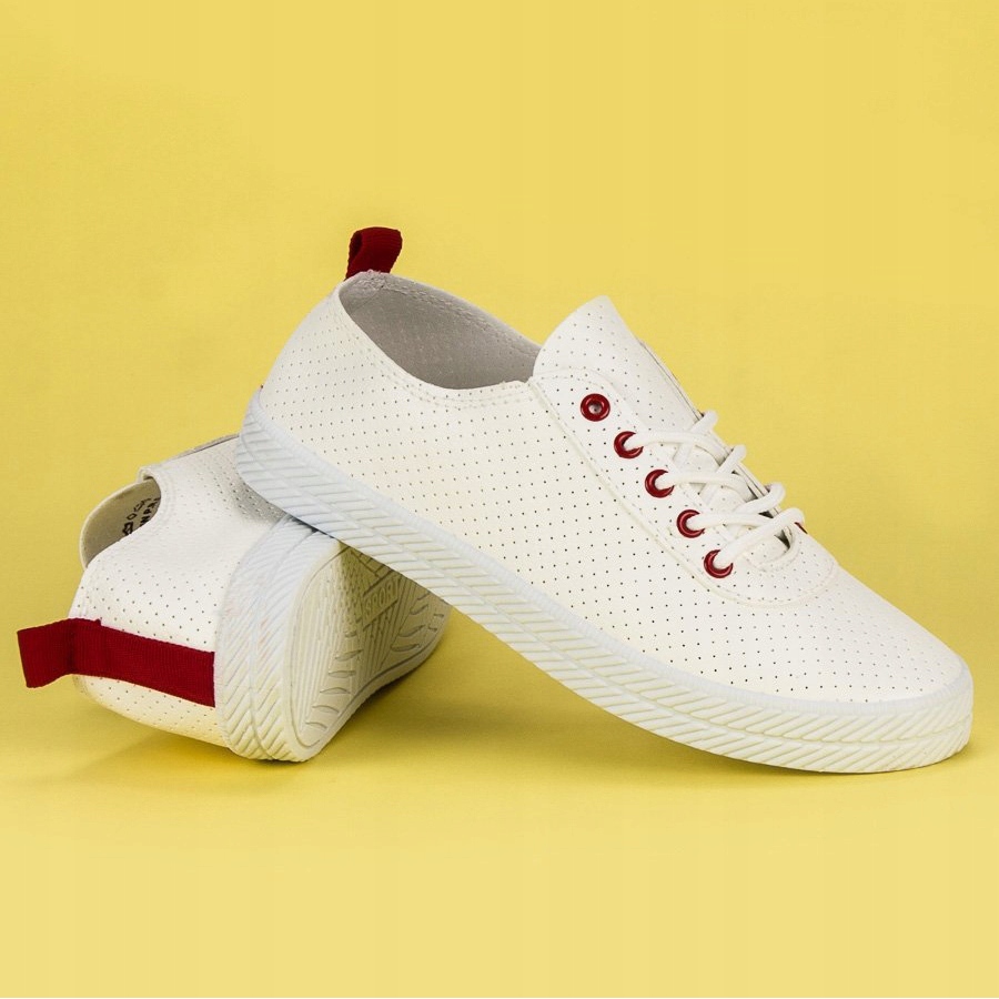 Les éléments rouges, notamment les rubans de dentelle et la bride arrière, ajoutent un caractère jeune aux baskets et apportent en même temps un peu de fraîcheur au blanc classique. La semelle en caoutchouc avec bande de roulement garantit adhérence et confort, et la finition flexible et douce assure un confort même après une journée entière de port.