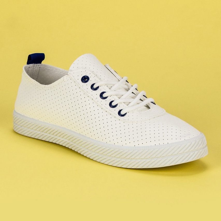 Fabriqués en cuir écologique, ils sont parfaitement respirants, ce qui en fait un choix parfait pour les chaudes journées d'été. La délicate perforation de la tige et le motif original sur les côtés des semelles leur donnent du caractère, et la bande bleue à l'arrière casse le blanc classique, ajoutant un esprit jeune aux baskets.