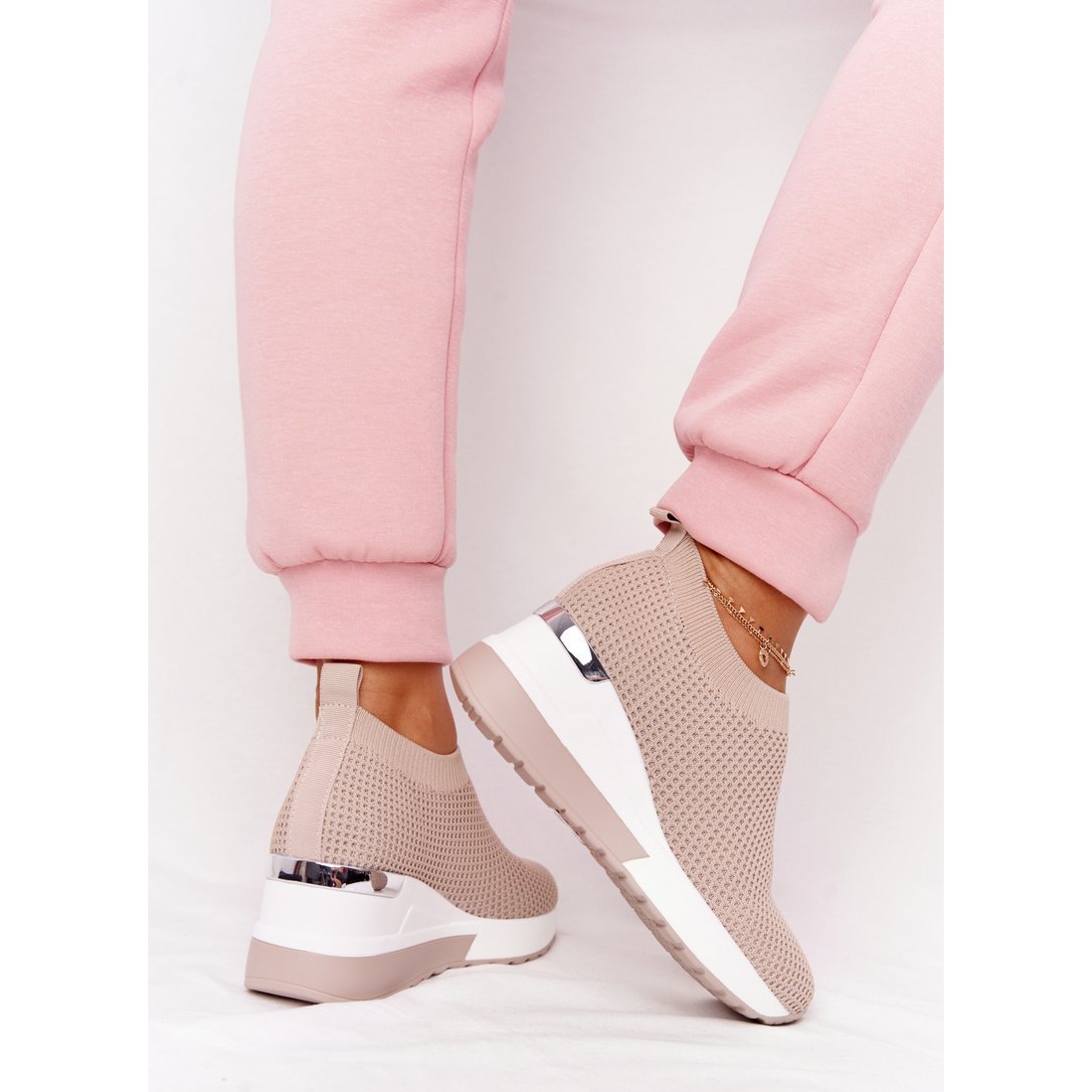 Inna marka Baskets Ajourées Slip On Wedge Beige Harmony blanche