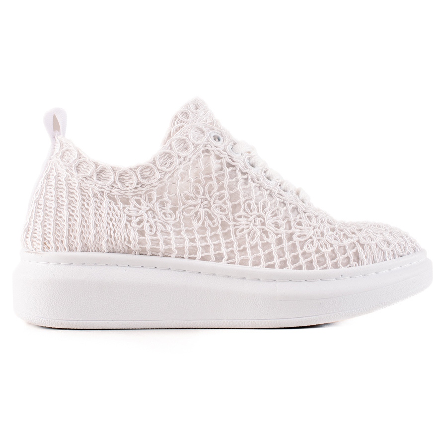 Découvrez le confort et le style à chaque pas avec les baskets à plateforme ajourées d'ARTIKER. Ces chaussures blanches uniques pour femmes allient un design décontracté à des solutions modernes. Fabriqués en matière 100% textile, tant à l'extérieur qu'à l'intérieur, ils garantissent une excellente ventilation et un confort de port au printemps et en été.