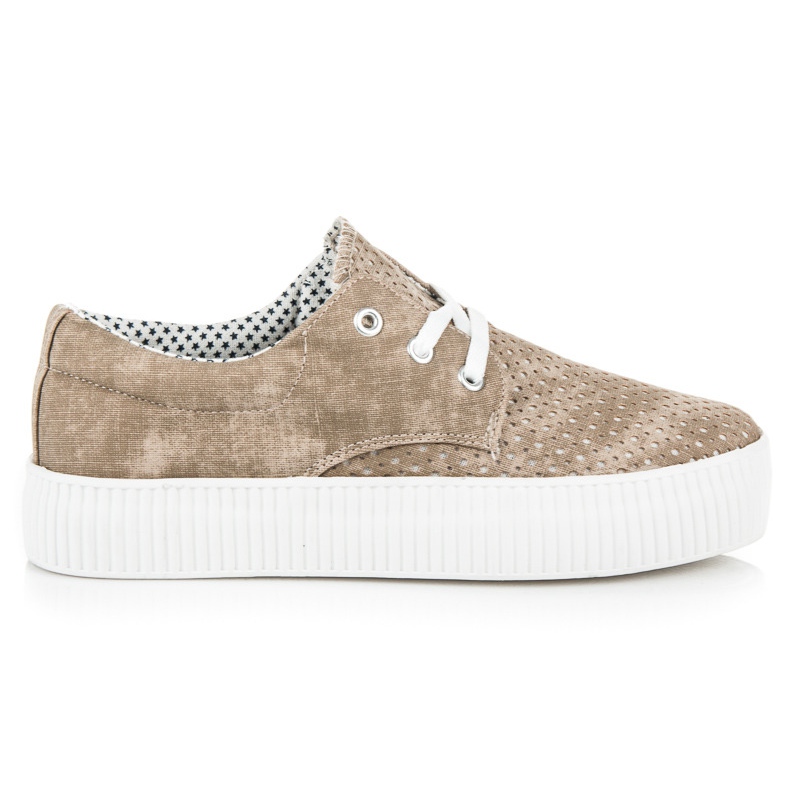 Nous vous présentons les baskets à plateforme ajourées marron de la marque Kylie - le choix parfait pour les femmes qui apprécient les chaussures à la mode et confortables au quotidien. Fabriquées en éco-cuir de haute qualité, ces baskets allient style et fonctionnalité. Les décors ajourés sur toute la surface leur confèrent un caractère moderne qui attire le regard et se démarque des modèles classiques.