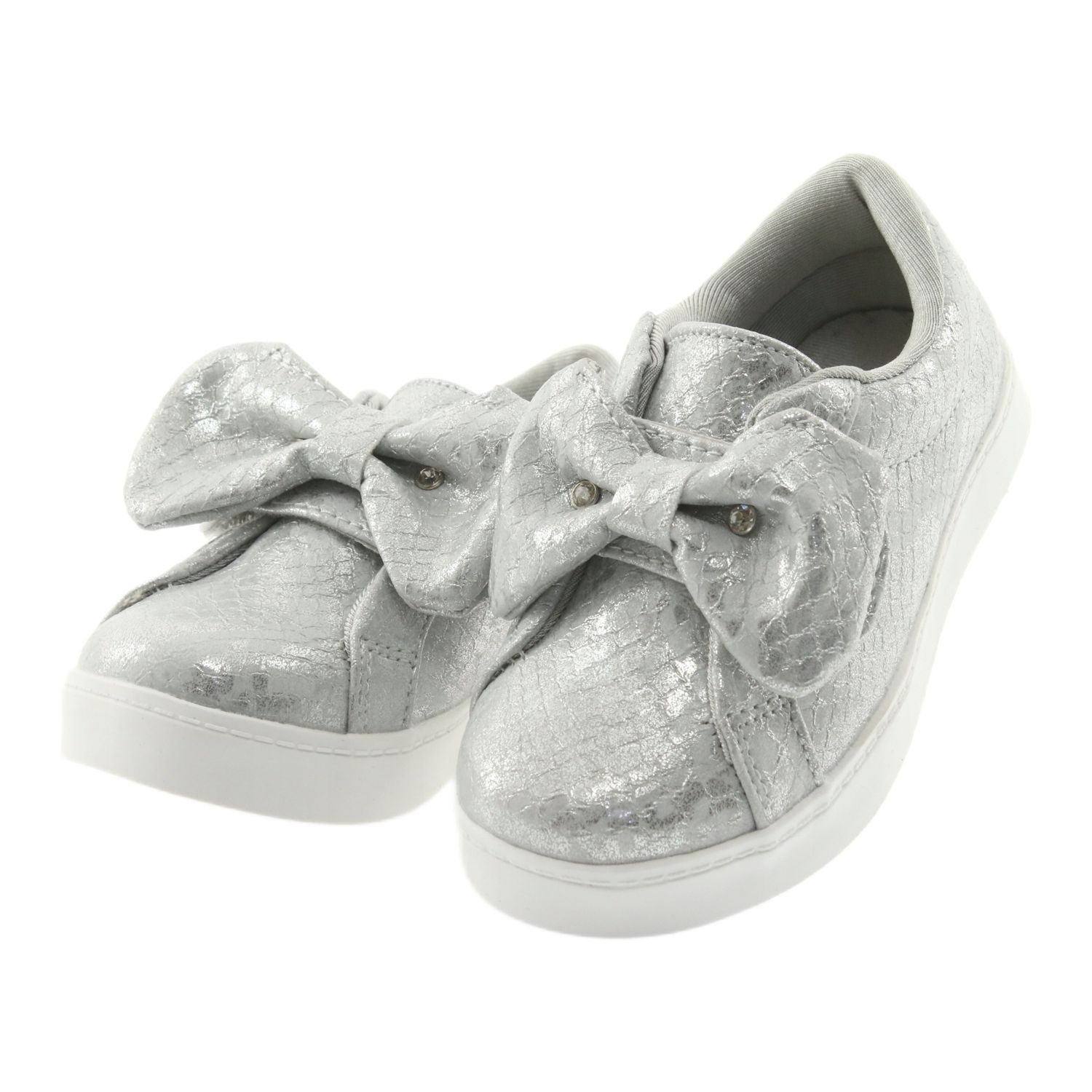 Découvrez les extraordinaires baskets de sport AMERICAN CLUB ES23 qui raviront tous les petits avant-gardistes ! Leur design unique, avec un nœud décoré de paillettes, en fait le complément parfait au style de tout enfant. Fabriqués en cuir écologique qui ressemble à une peau de serpent dans une élégante teinte argentée, ils allient esthétique et confort de port.