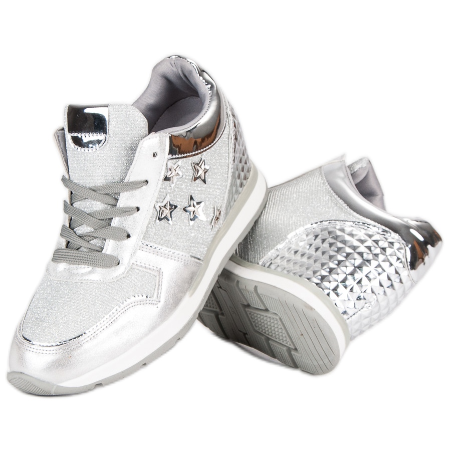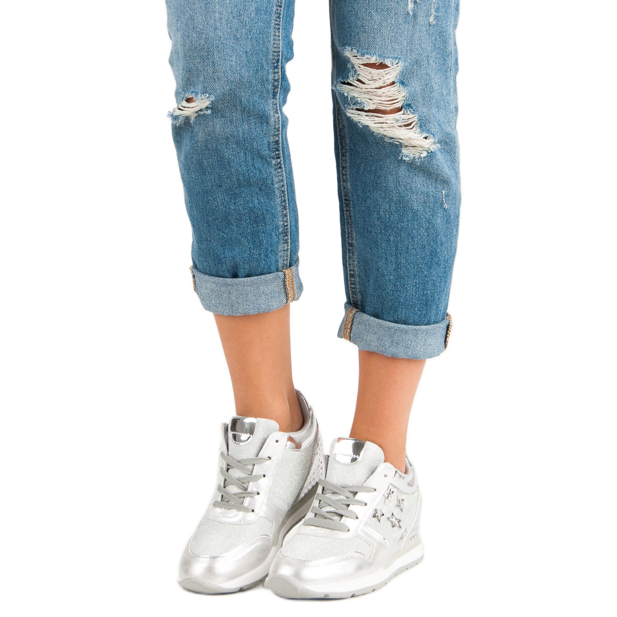 Les baskets gris argenté sont une proposition extrêmement élégante qui plaira sûrement à toutes les femmes à la mode. Fabriqués en cuir écologique verni, ils allient un design moderne avec une attention portée au confort de port.