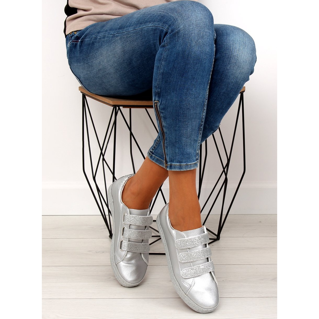 Inna marka Baskets argentées avec fermeture Velcro XL10P Argent gris jaune
