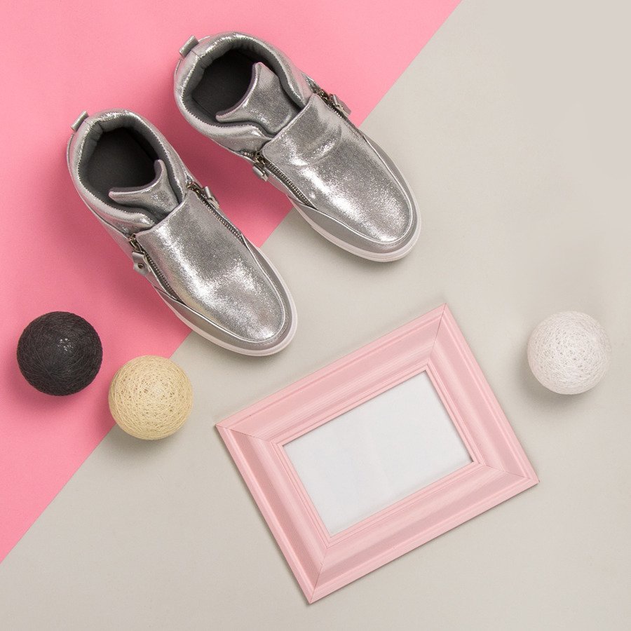Les baskets à fermeture éclair Silver Lgm sont la combinaison parfaite de style unique et de confort, qui attireront certainement l'attention de tous les amateurs d'accessoires de mode. Ces baskets pour femmes se distinguent par un matériau argenté brillant, qui ajoute de l'élégance et en fait un choix parfait aussi bien pour un usage quotidien que pour des occasions spéciales.