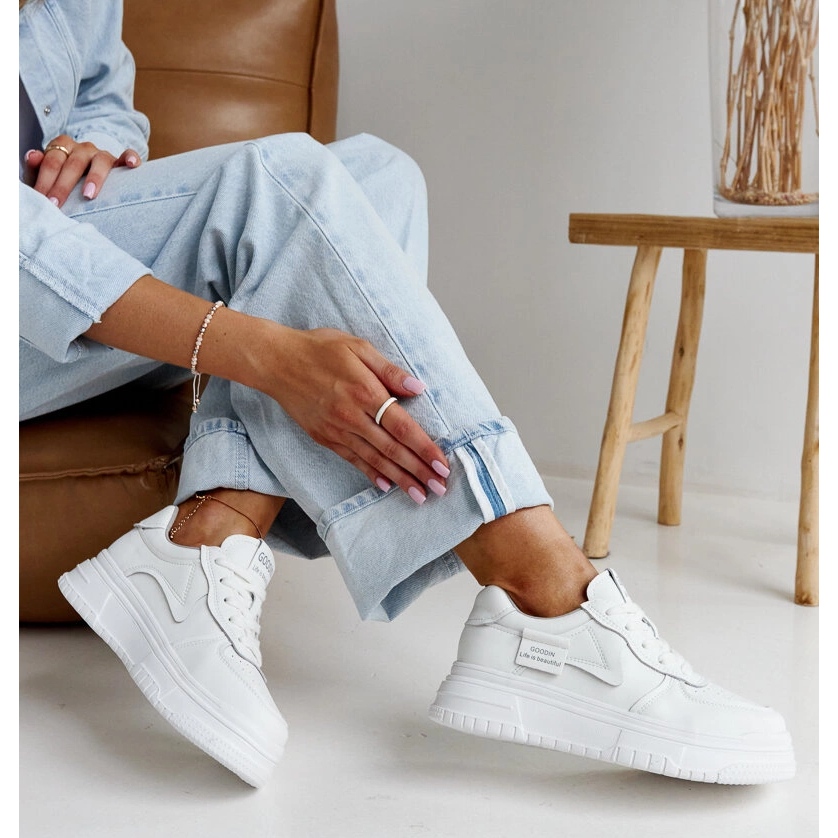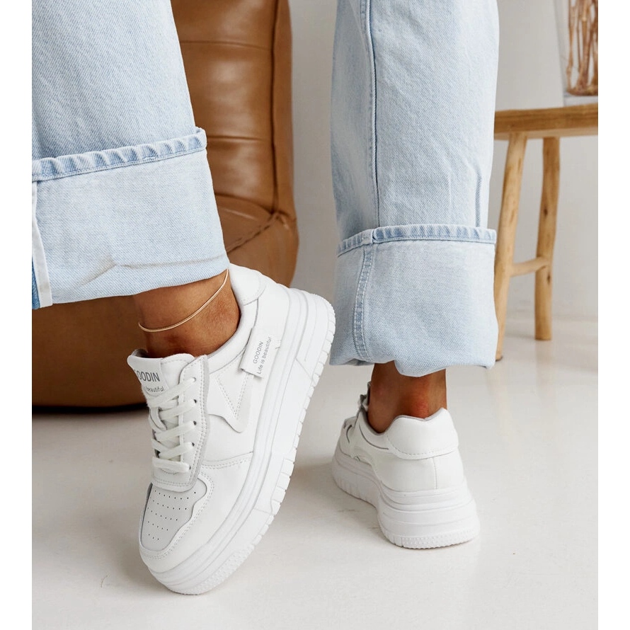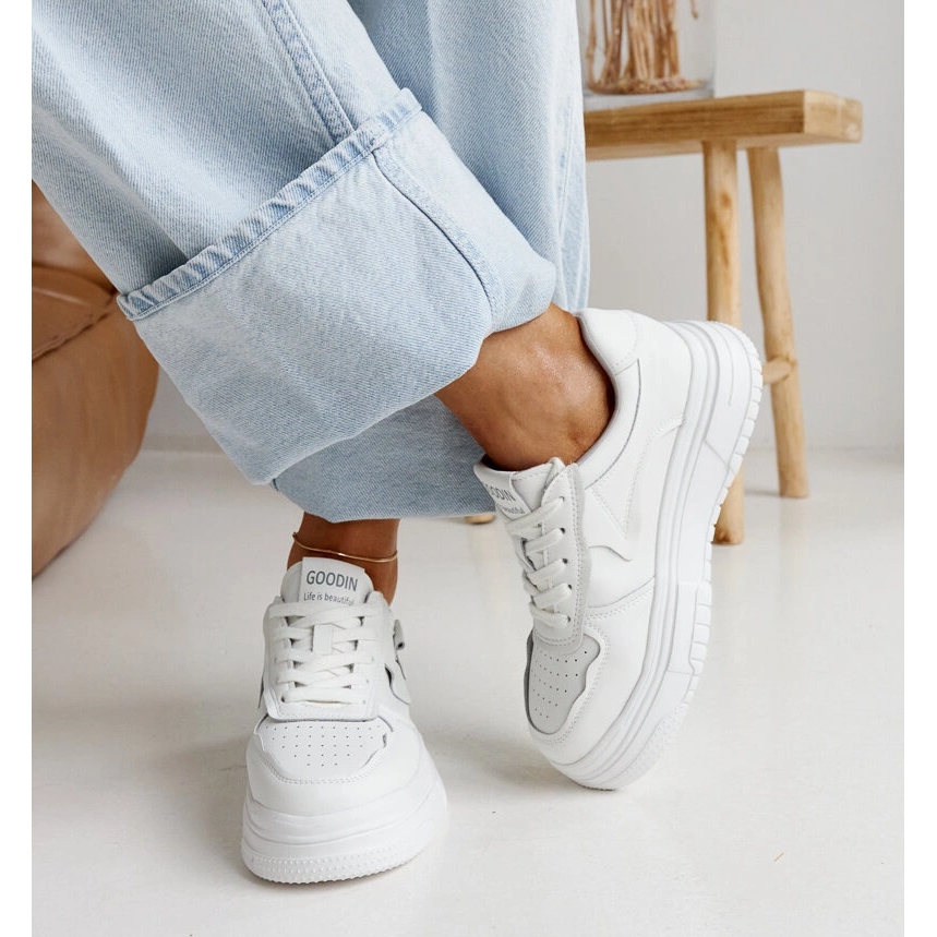 - Modèle: Baskets en cuir blanc à semelle épaisse