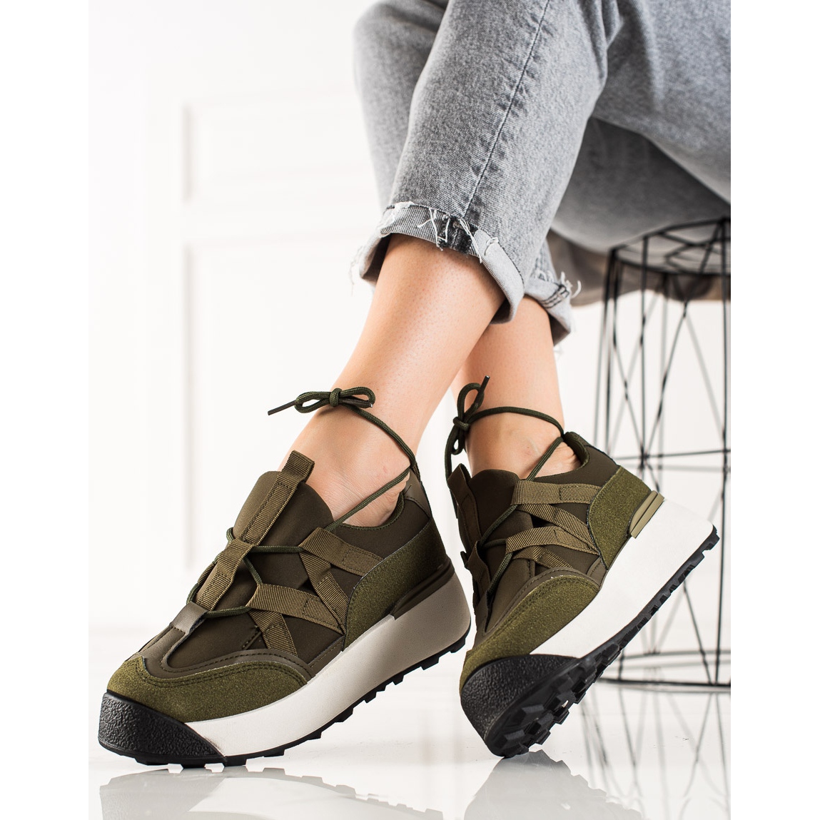 Ces baskets basses se distinguent par leur couleur verte et leur design moderne, qui s'intègre parfaitement au style casual et fashion. Fabriqués à partir de matériaux de haute qualité, dont 50 % en simili cuir et 50 % en simili daim, ils sont non seulement esthétiques, mais également fonctionnels. Un talon doux et intégré garantit le confort de port, et le bout rond ajoute de la légèreté.