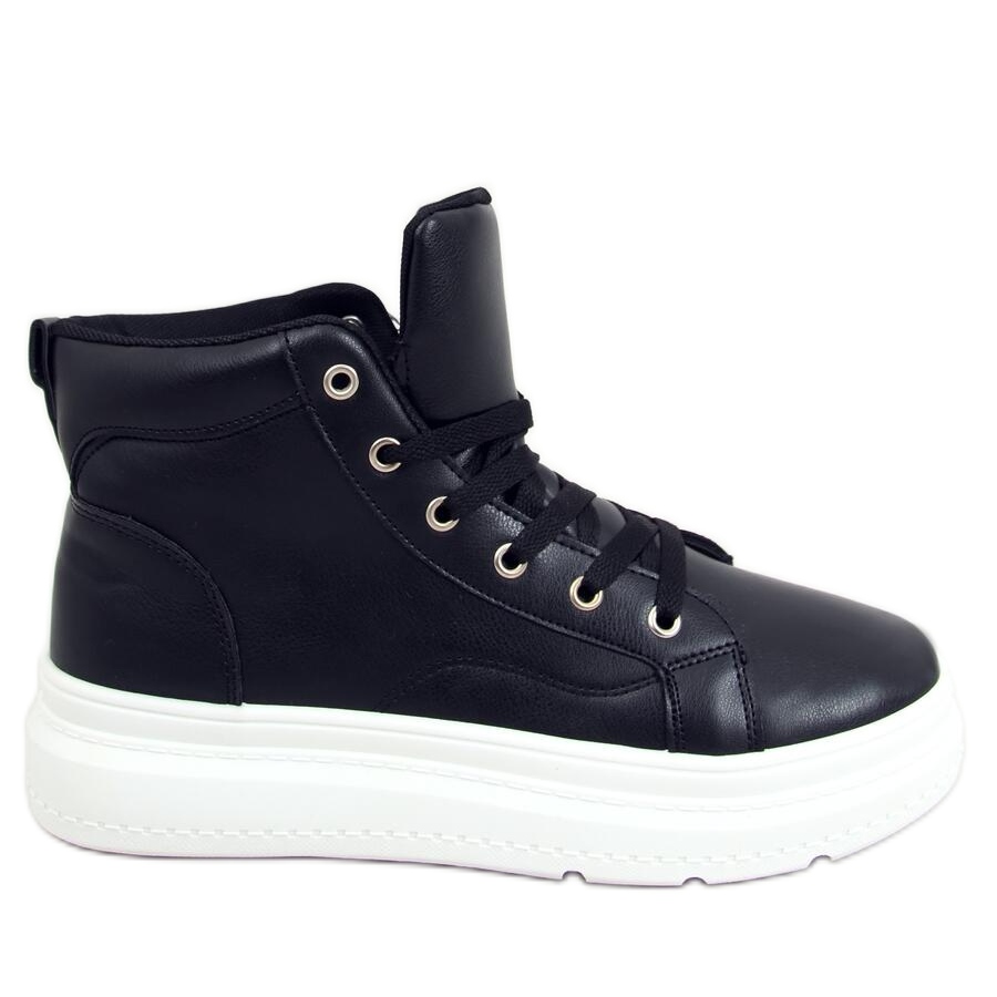 Ava Black Sneakers - Élégant, confortable et pour chaque occasion. La coupe noire et lisse en cuir écologique va bien avec les stylisations quotidiennes et urbaines, et la semelle blanche haute avec une hauteur de 4,5 cm ajoute quelques centimètres et attire des looks. Classic Leçage assure un ajustement parfait, et l'intérieur bordé de garanties de tissu garantit le confort toute la journée.