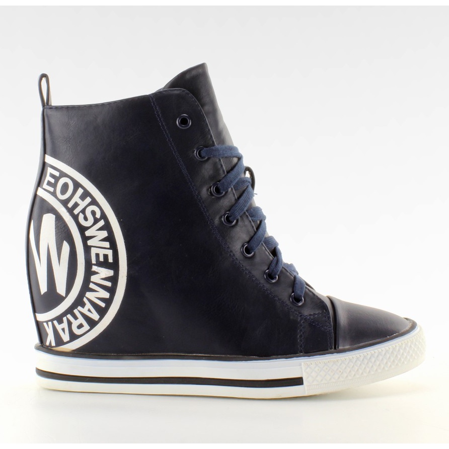 Baskets estampillées Y450 - bleu marine, hautes, avec une cale cachée (9 cm). Élégant et confortable : parfait lorsque vous souhaitez ajouter des centimètres sans sacrifier le confort au quotidien.