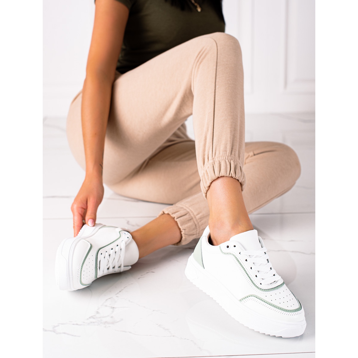 Découvrez la combinaison parfaite de style et de confort avec les baskets SHELOVET avec empiècement vert. Ces chaussures pour femmes uniques, blanches avec des accents verts, sont un choix parfait pour tous les jours, aussi bien au printemps qu'en automne.