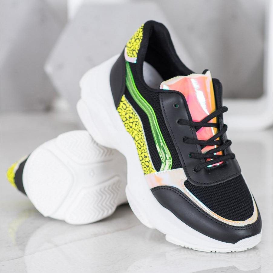 Découvrez les baskets Marquiz uniques avec empiècements fluo en versions noires et multicolores qui égayeront à coup sûr votre garde-robe. Ces chaussures de sport sont le choix idéal pour les femmes qui souhaitent se démarquer. La base noire classique combinée aux accents colorés originaux les rend non seulement pratiques, mais aussi extrêmement élégantes.