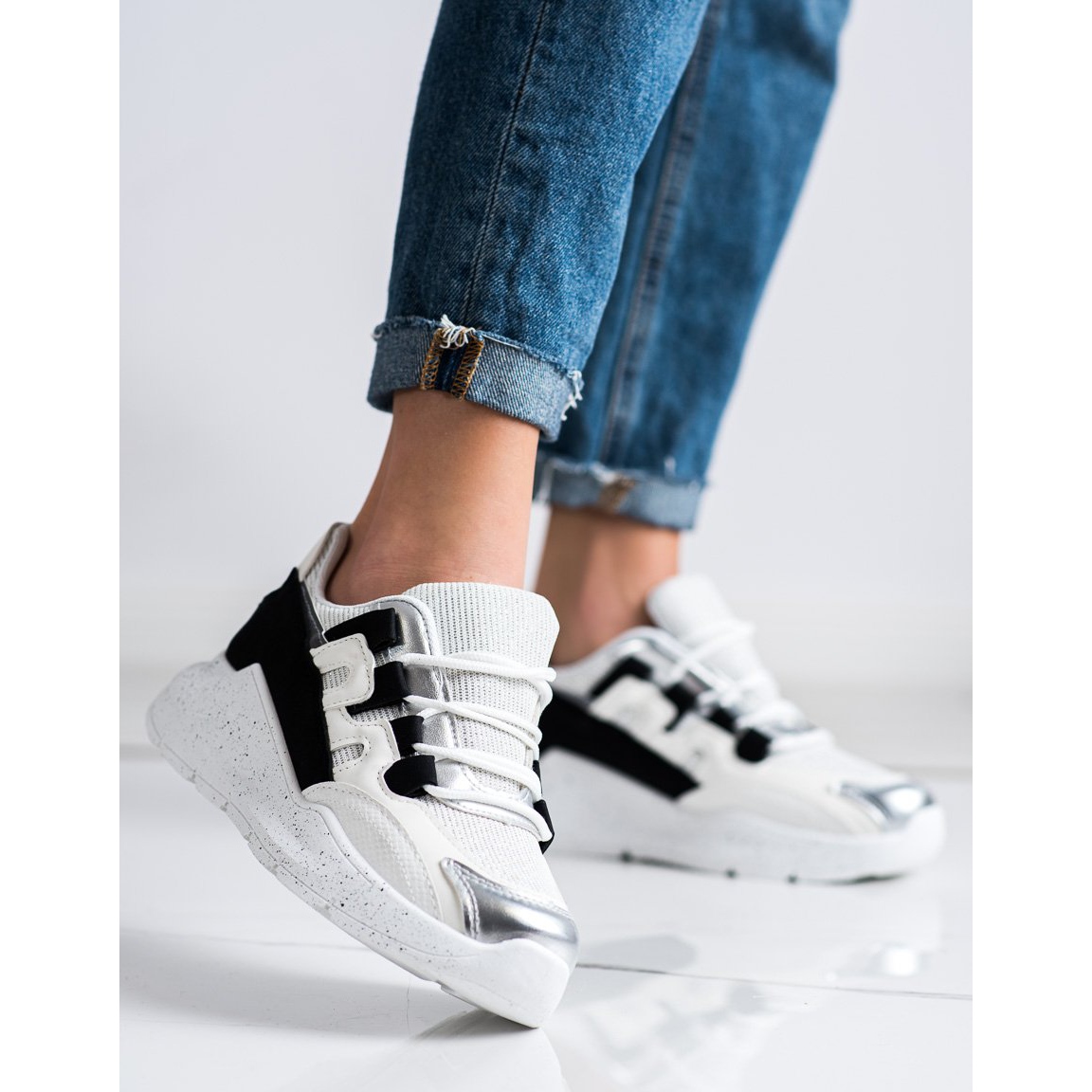 Les baskets pour femmes Ideal Shoes sont une proposition idéale pour les femmes qui apprécient le style et le confort. Ces chaussures à la mode combinent une couleur blanche classique avec d'élégants empiècements noirs, ce qui en fait un complément parfait à toute tenue de tous les jours.