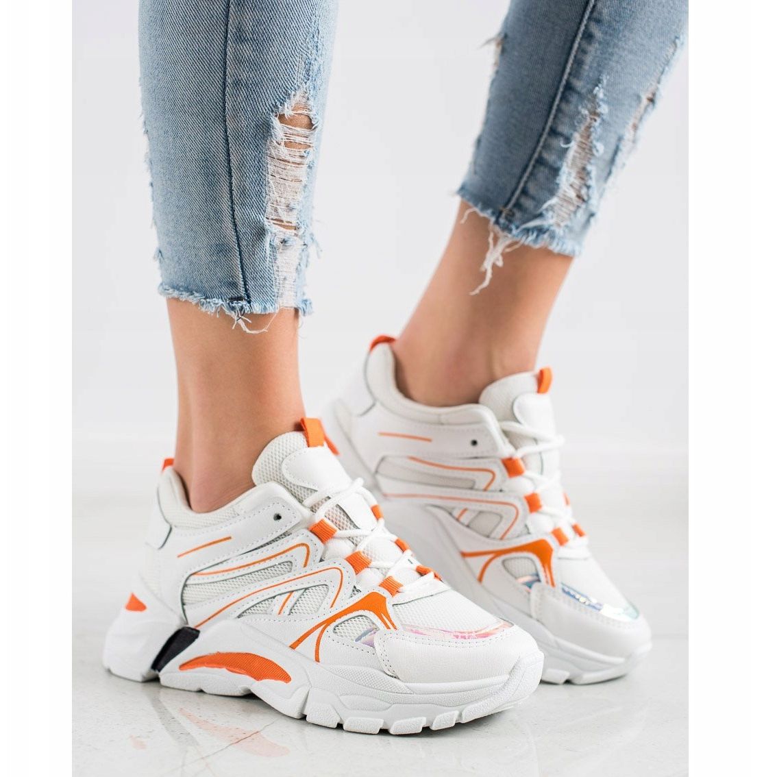 Détails: SHELOVET Baskets Avec Insert Orange blanche