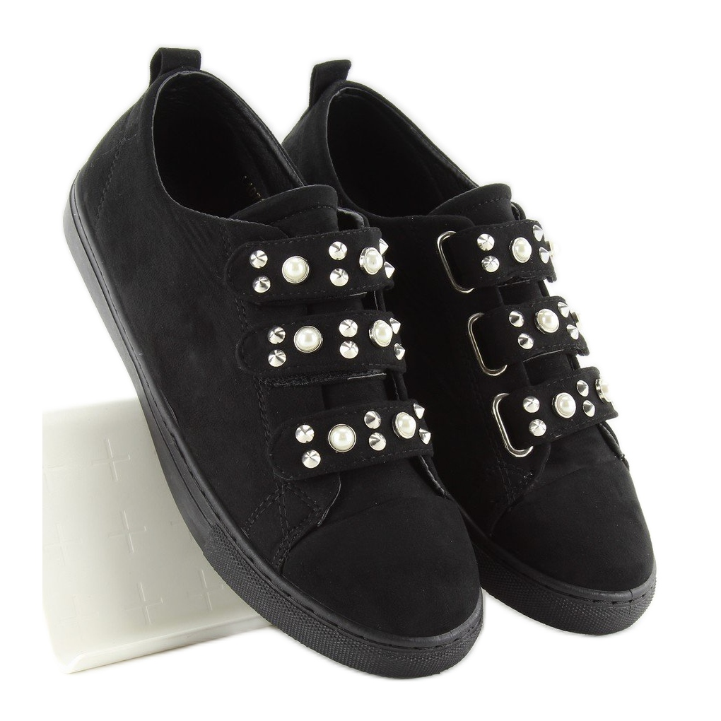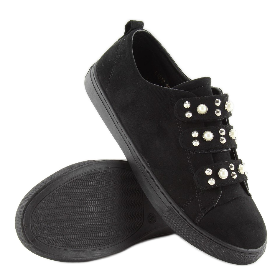 Les baskets L1078 noires avec perles sont une proposition idéale pour les femmes qui apprécient la combinaison du confort et d'une apparence à la mode. Fabriquées en éco-daim doux, ces baskets élégantes séduisent par leur élégance et leurs matériaux de haute qualité. Les bandes fermeture scratch facilitent non seulement l'enfilage des chaussures, mais leur donnent également un caractère original grâce à des perles décoratives.