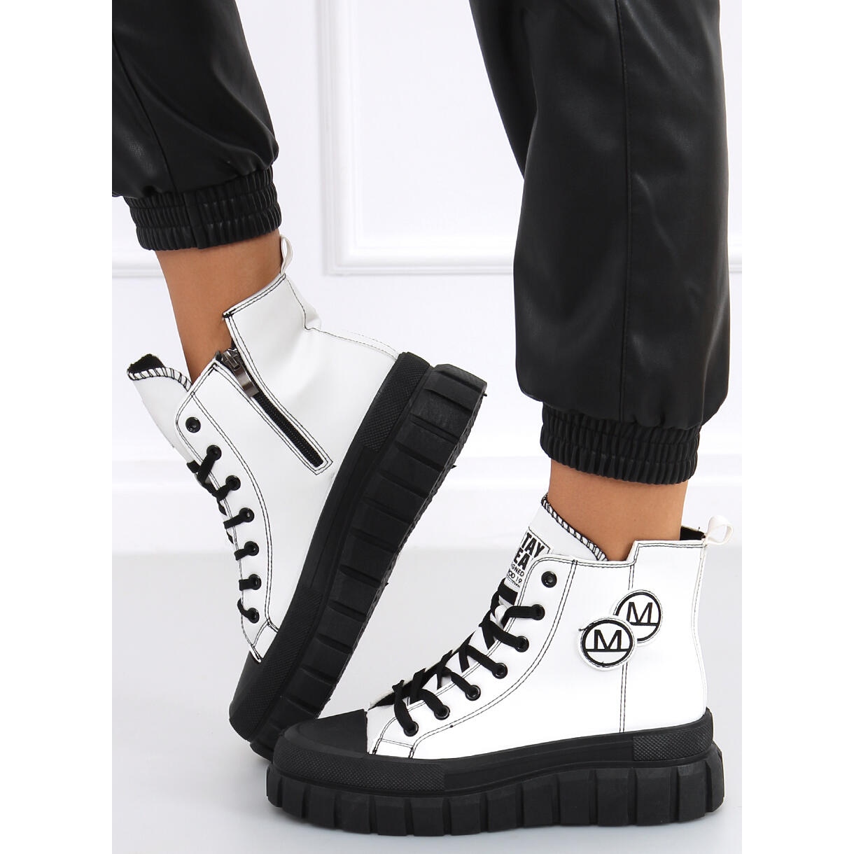 Fabriquées en cuir écologique de haute qualité, ces baskets assurent durabilité et confort de port. L'intérieur est doublé de tissu, ce qui augmente encore leur confort. La fermeture éclair pratique sur le côté est une solution astucieuse qui facilite l'enfilage et le retrait des chaussures et leur donne un caractère original.