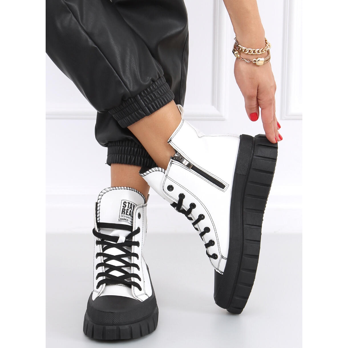 Les baskets montantes Ayse BLANC/NOIR sont le choix parfait pour les femmes à la recherche de chaussures tendance et confortables au quotidien. Leur conception à lacets arrivant au-dessus de la cheville, combinée à une semelle moderne et haute de 3,5 cm, leur confère un look extrêmement élégant. Le blanc classique combiné au noir élégant vous permet de créer de nombreux styles intéressants qui correspondent parfaitement aux tendances de la mode actuelles.