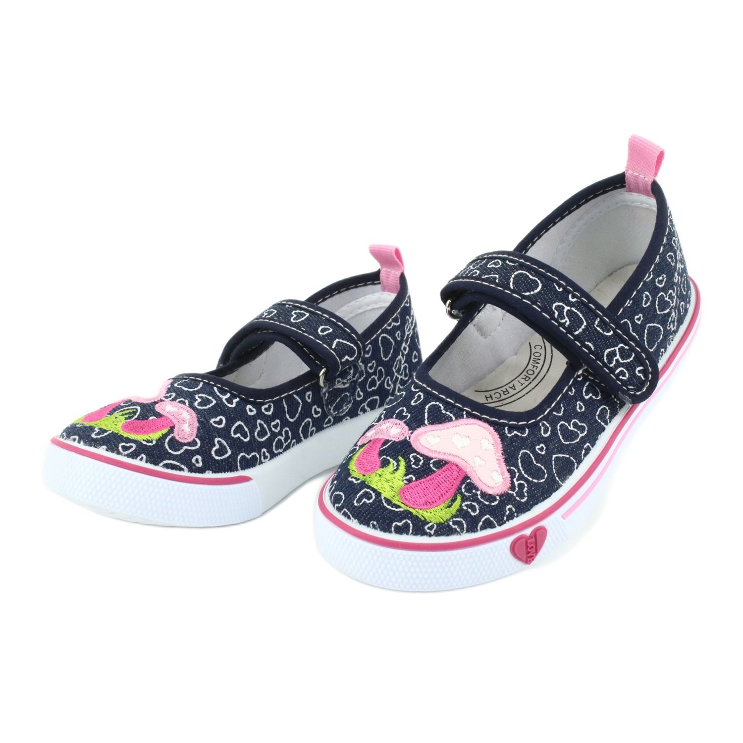 American Club Baskets ballerines avec coeurs Velcro TEN15 blanc bleu marine rose