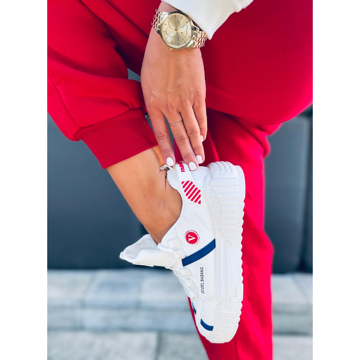 Découvrez un nouveau niveau de style et de confort avec les chaussures de sport Bang Red ! Ces chaussures à semelle haute pour femme sont un choix parfait pour les femmes actives qui souhaitent allier mode et confort au quotidien. Parfaits aussi bien pour l'entraînement que pour les occasions décontractées, ils attireront l'attention avec leurs couleurs uniques : un blanc classique avec des accents de rouge intense.