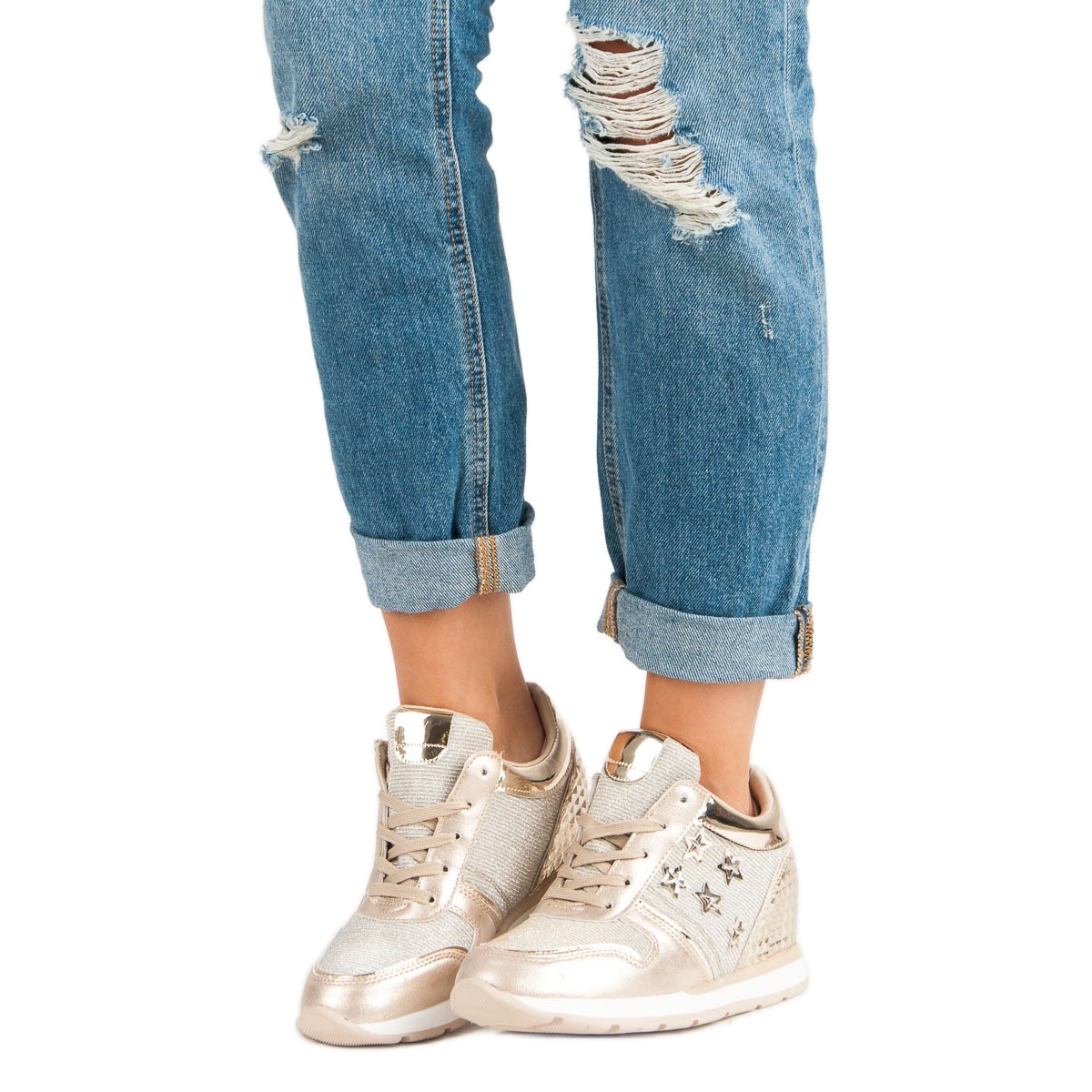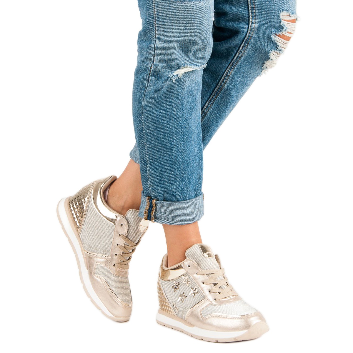 Les baskets dorées de Butymodne.pl sont le choix parfait pour les femmes qui veulent se démarquer dans la foule. Leur haute qualité et leur design élégant en font un choix parfait pour les tendances de chaussures de chaque saison. Fabriquées en cuir écologique verni, ces baskets attirent non seulement l'attention, mais garantissent également la durabilité et le confort de port, essentiels pour un style de vie actif.