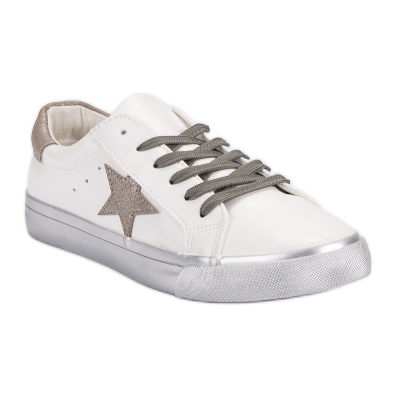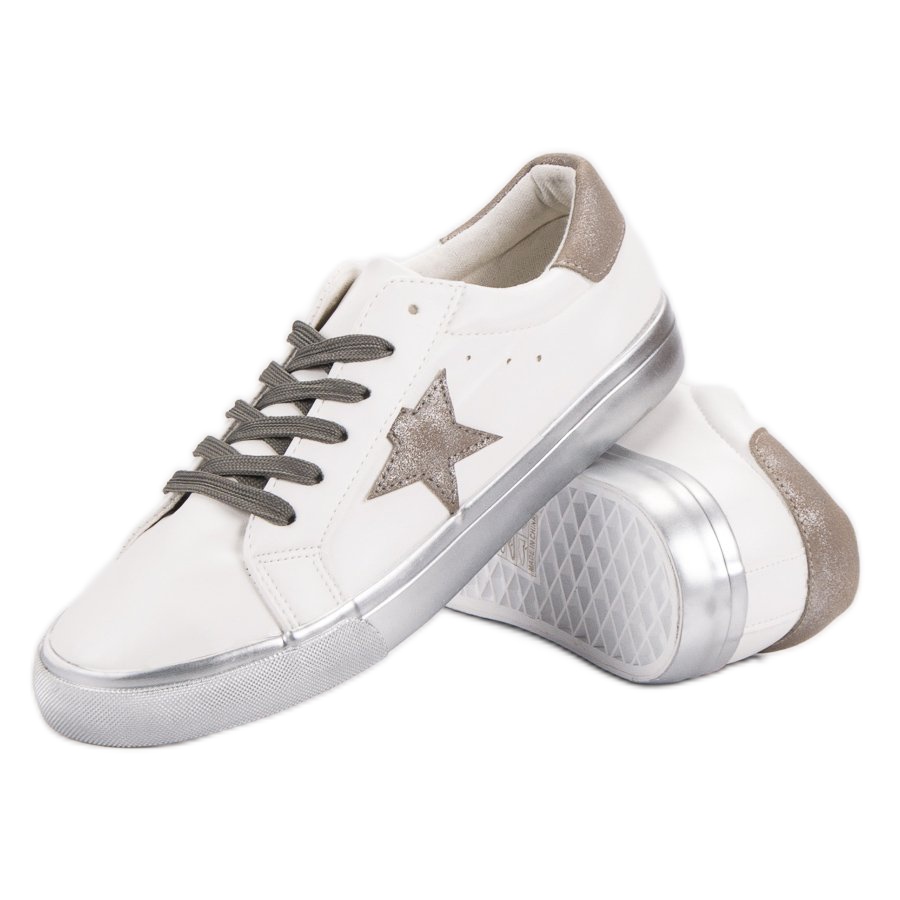 Les baskets basses élégantes, blanches, multicolores, sont un choix parfait pour les femmes qui souhaitent allier confort et look à la mode. Ces baskets basses dans une élégante nuance de blanc avec l'ajout d'argent sont un véritable succès dans le monde de la chaussure. Montant jusqu'à la cheville, la tige lisse ornée d'une étoile argentée et d'un élément subtil sur le talon leur confère un caractère unique et les distingue des autres modèles.