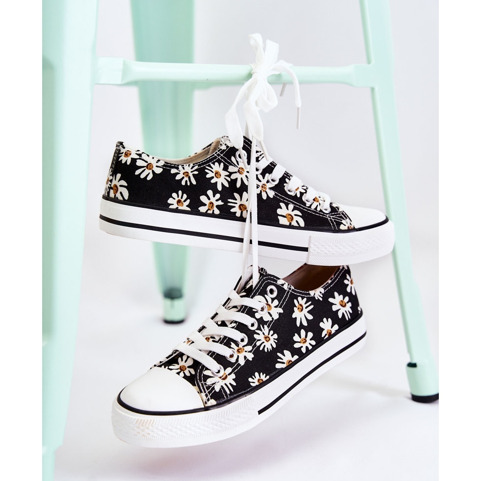 Détails: PS1 Baskets Basses Femme Avec Fleurs Janey Noir le noir