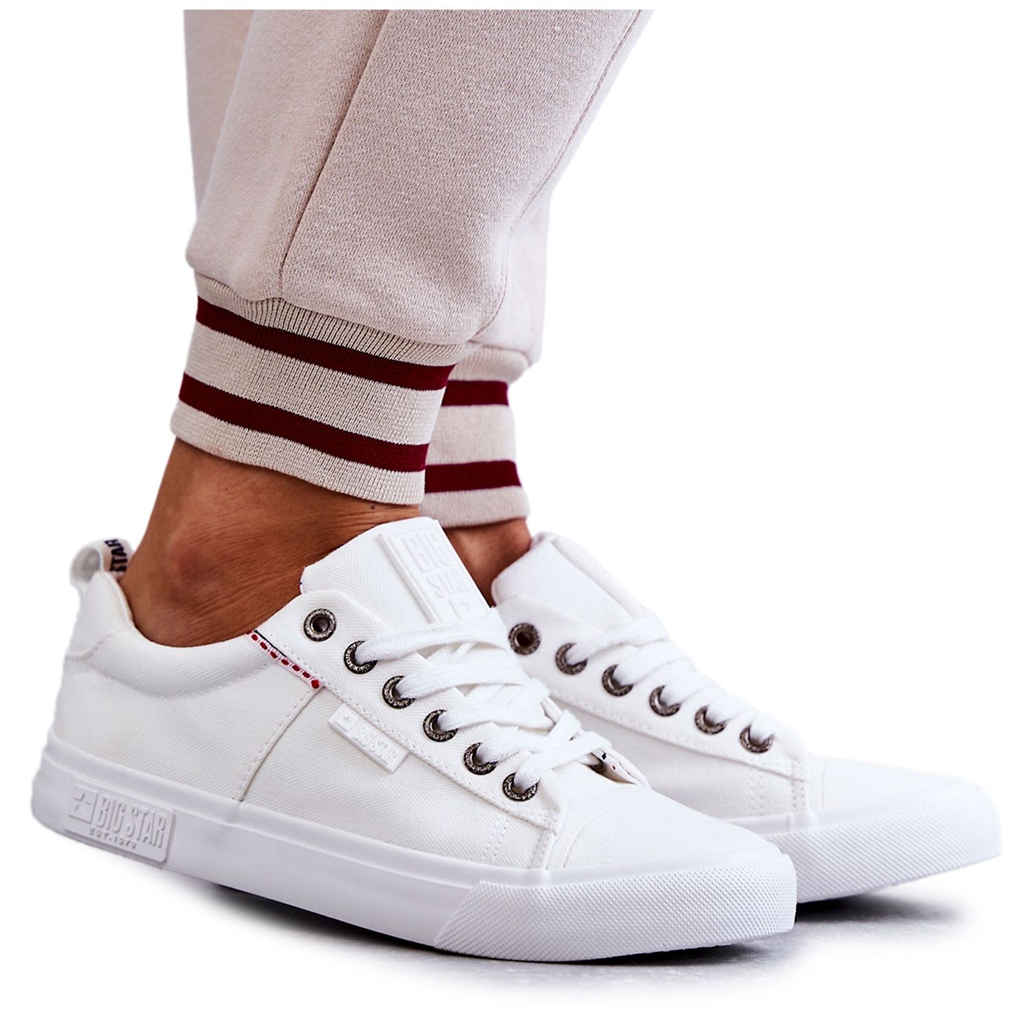 Les baskets classiques et confortables Big Star KK274003 sont une proposition universelle au quotidien. La tige basse atteignant la cheville (environ 6 cm) et le laçage garantissent un bon ajustement, et la structure du matériau garantit la légèreté et la respirabilité. Une couleur blanche subtile va facilement avec de nombreux styles, du décontracté au sport.