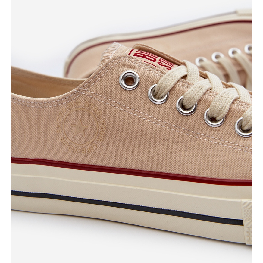 Les baskets Big Star Low se caractérisent par un look simple mais élégant qui va parfaitement avec un jean, un short ou un chino. Grâce à la fixation lacée, vous pouvez facilement les faire correspondre à votre pied, ce qui augmente le confort du port. La couleur beige, à la fois en haut et en semelle, rend les baskets faciles à combiner avec d'autres articles de garde-robe.