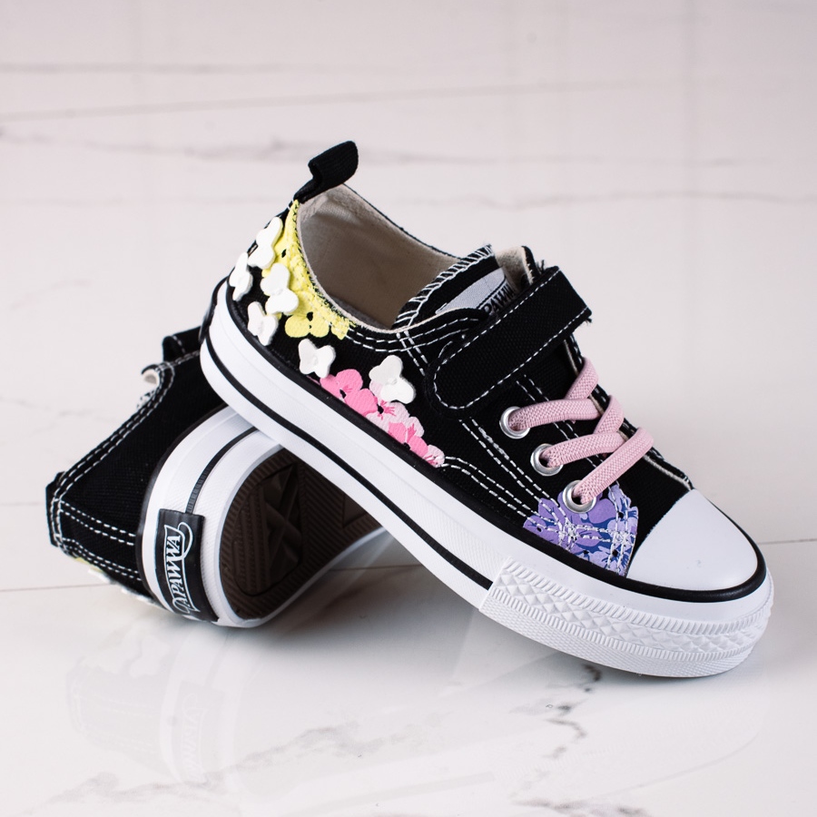 Détails: Baskets basses pour enfants Shelovet noires à fleurs multicolore