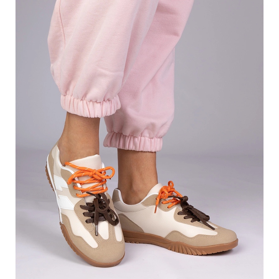 Nous présentons des baskets beige avec des lacets colorés - le choix parfait pour les femmes qui veulent combiner le confort avec le style à la mode. Ces chaussures de sport se distinguent par un design minimaliste dans une belle teinte beige, qui s'inscrit parfaitement dans diverses stylisations, du décontracté à plus élégant.