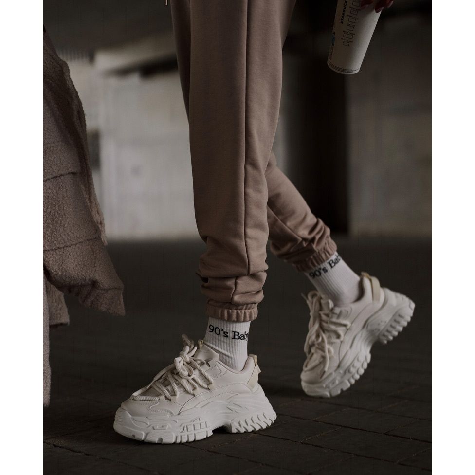 Découvrez le style et le confort uniques avec les baskets pour femmes sur la semelle massive de Nevel dans une nuance beige légère. Ces chaussures à la mode, situées sur une plate-forme solide d'une hauteur de 6 cm, s'intègrent parfaitement dans les tendances actuelles des chaussures sportives. Grâce à l'insert en mousse amovible, chaque instant passé dans ces baskets devient un plaisir - ils offrent un excellent soutien et confort tout au long de la journée.