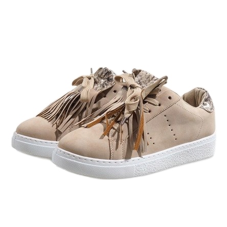 La couleur beige permet à ces baskets de s'adapter à différents styles, et les franges intégrées de manière intéressante ajoutent de la légèreté et une atmosphère bohème. Les baskets ont un bout rond et une hauteur basse, ce qui garantit un confort de port tout au long de la journée. Le caoutchouc utilisé pour la semelle offre une excellente adhérence et la semelle intérieure en tissu intégrée fait de chaque pas un plaisir.
